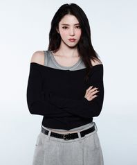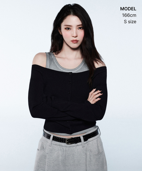 우먼즈 슬림 오프숄더 가디건 [블랙]