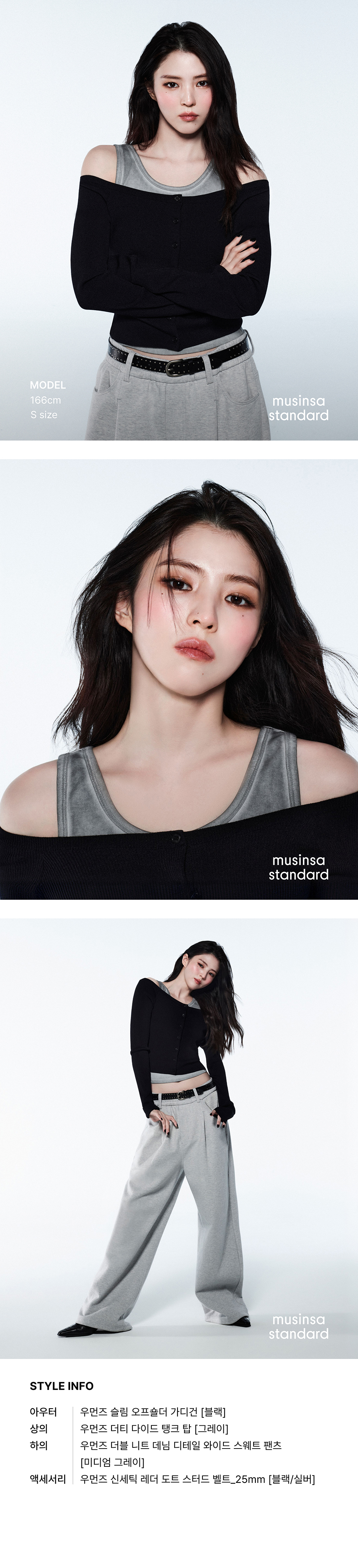 [한소희 PICK] 우먼즈 더블 니트 데님 디테일 와이드 스웨트 팬츠 [미디엄 그레이]