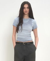 우먼즈 더티 다이드 슬림 크루 넥 티셔츠 [그레이]