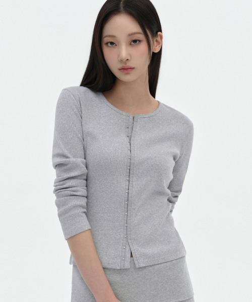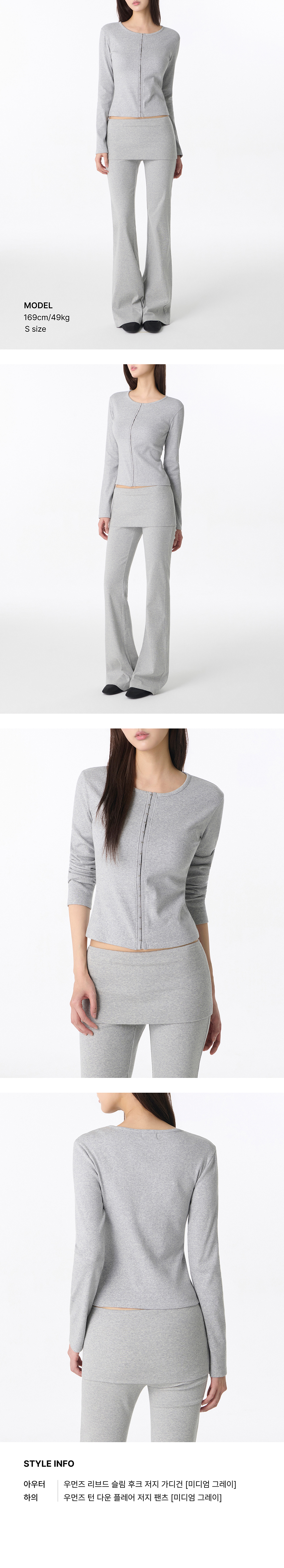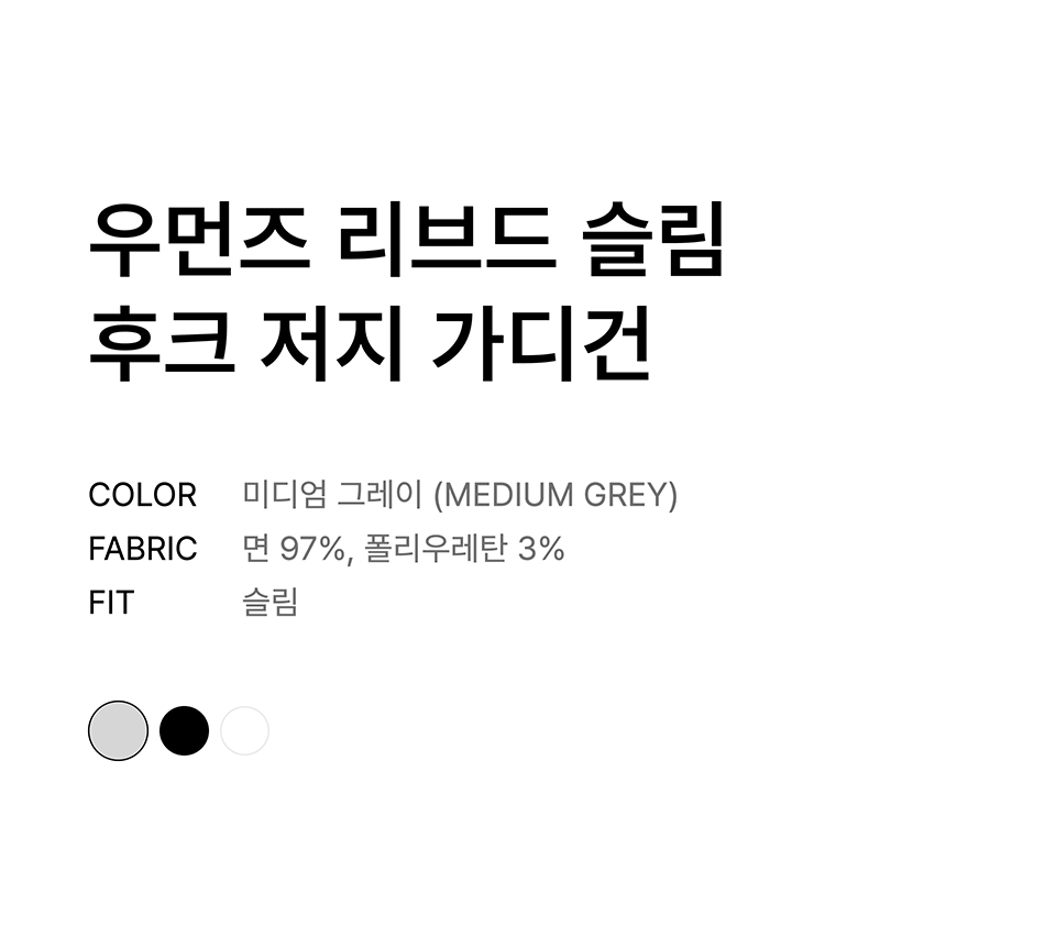 우먼즈 리브드 슬림 후크 저지 가디건 [미디엄 그레이]