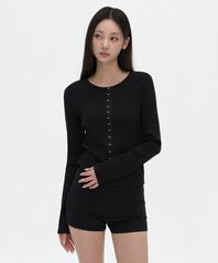 우먼즈 리브드 슬림 후크 저지 가디건 [블랙]