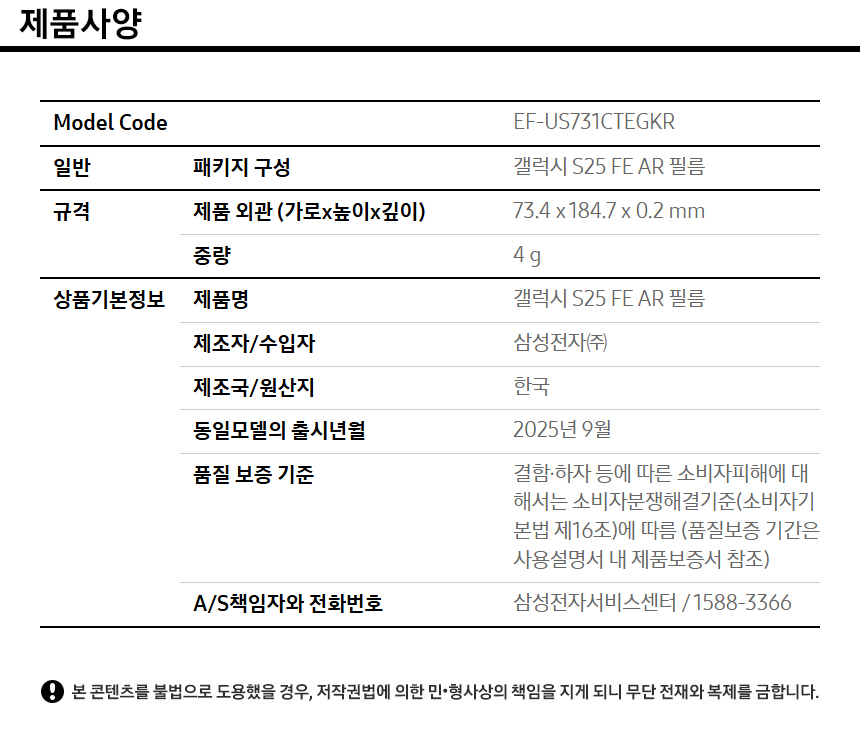 삼성 갤럭시 S25 FE 보호필름 AR 스크린 프로텍터 2매 EF-US731