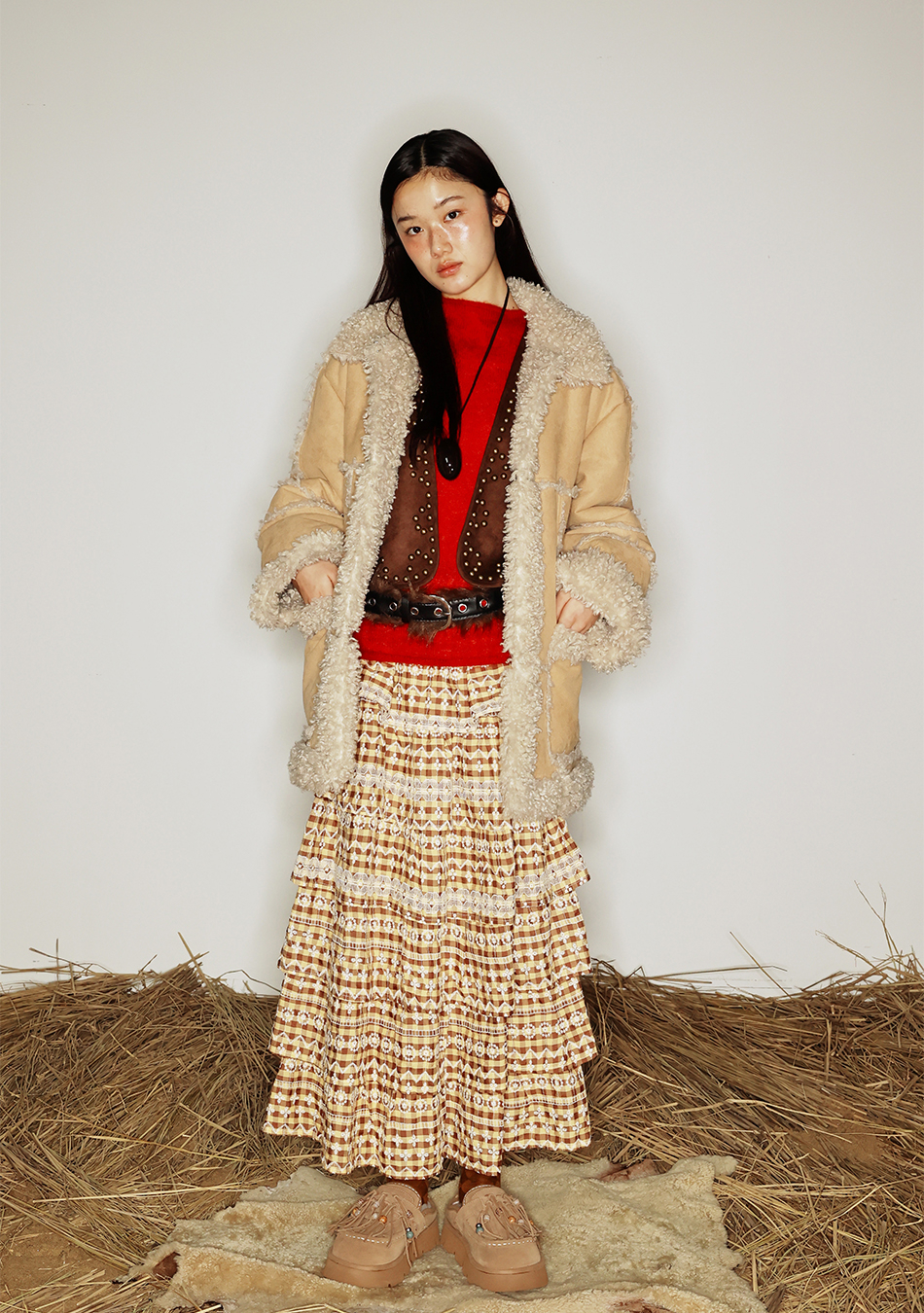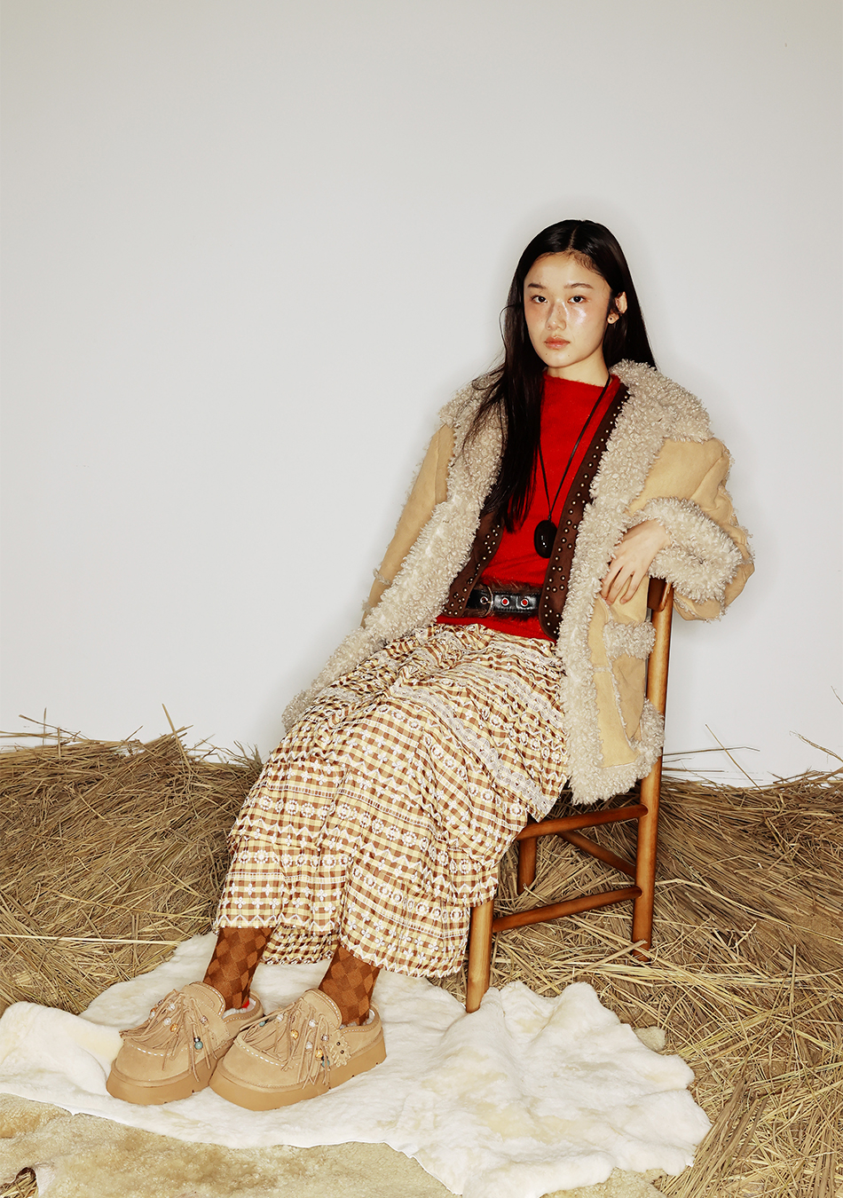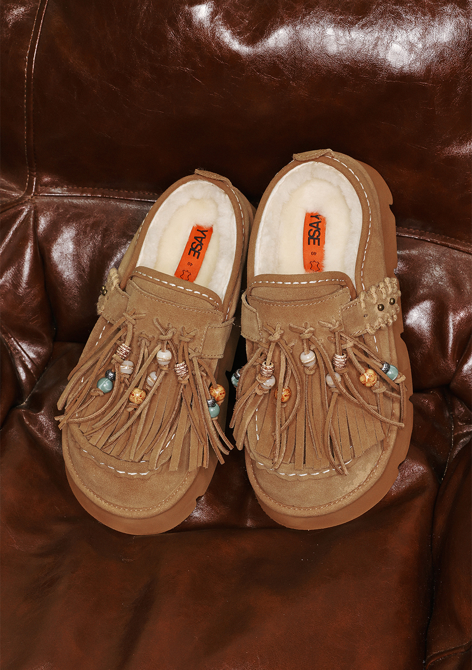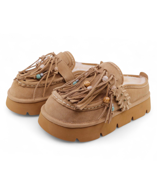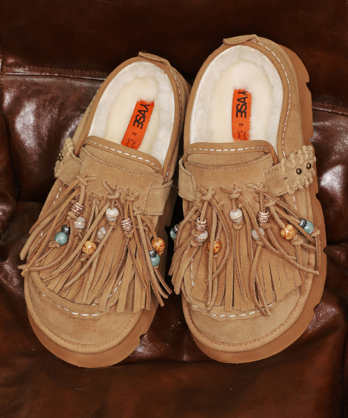 송이송이x야세 네이티브 테슬 천연양모 클로그 체스넛