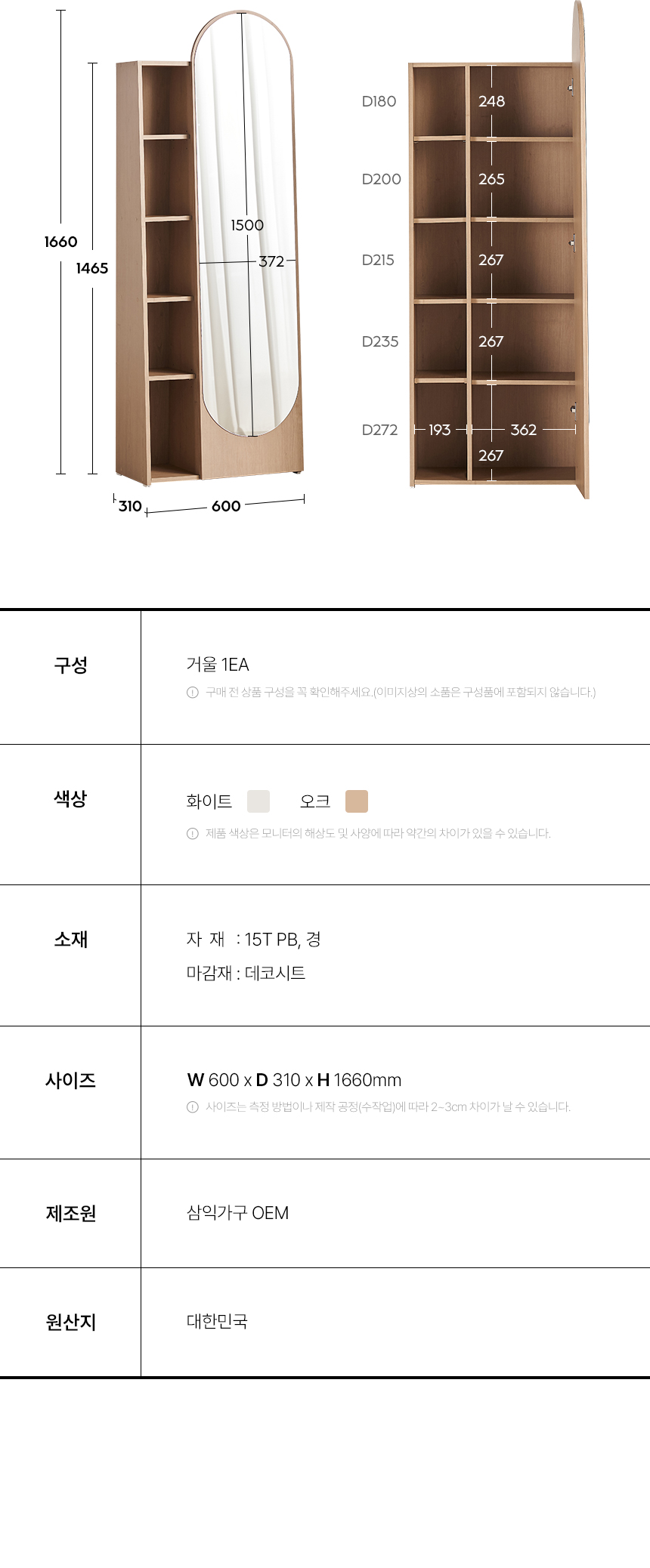 로들리 라운드 확장형 와이드 수납 전신 거울