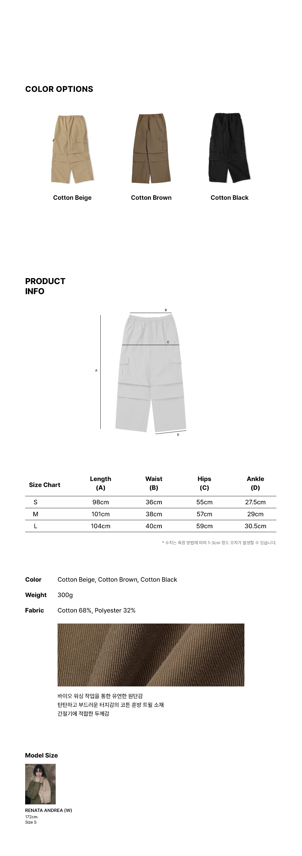 파라슈트 와이드 카고 팬츠 [COTTON BLACK]