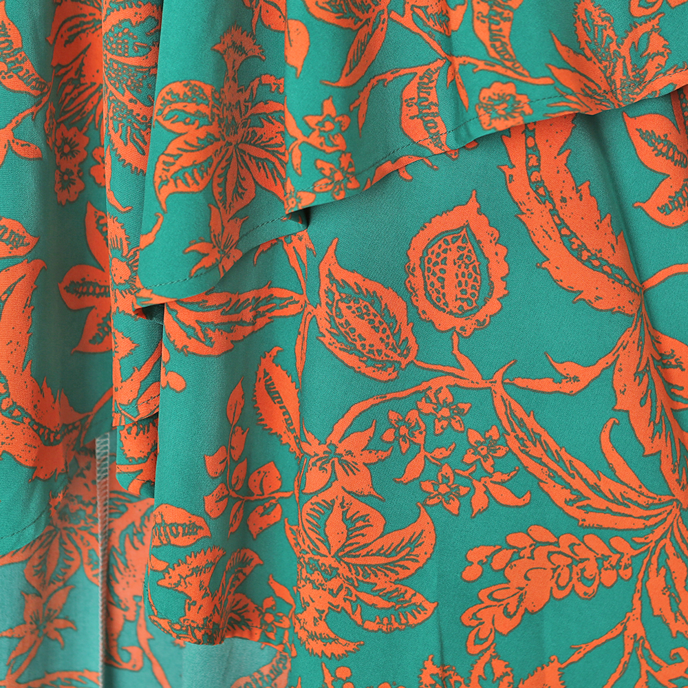 · 그린 바탕 컬러와 오렌지 컬러의 유니크한 매치로 고급스러운 에스닉 분위기 연출