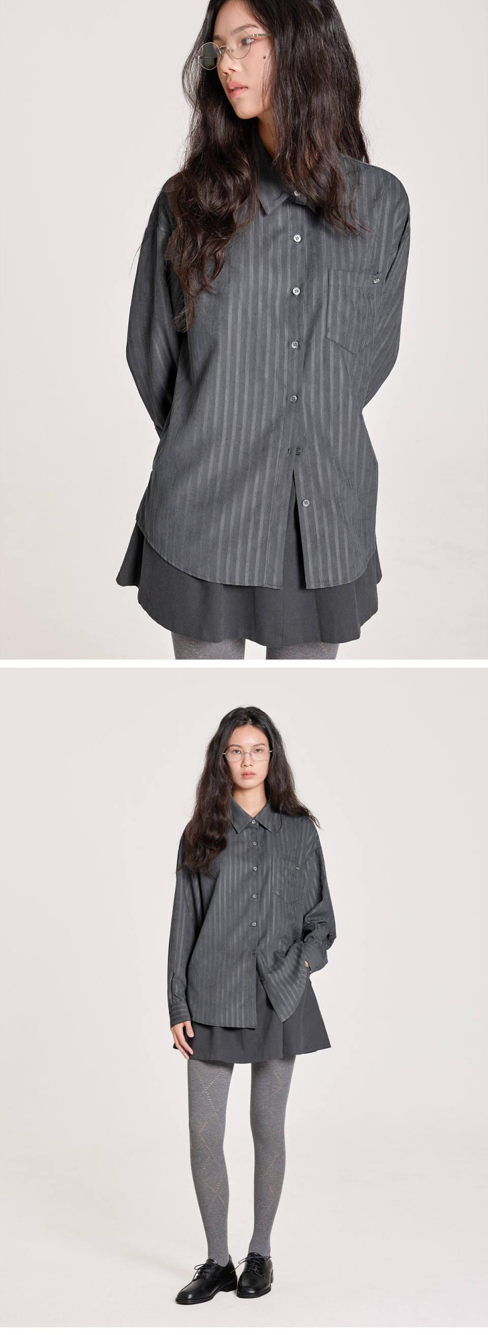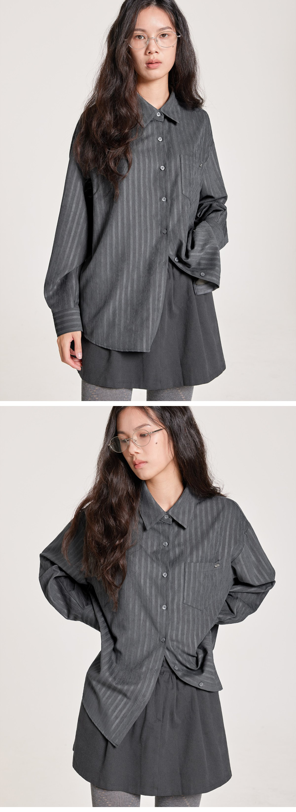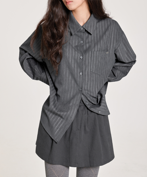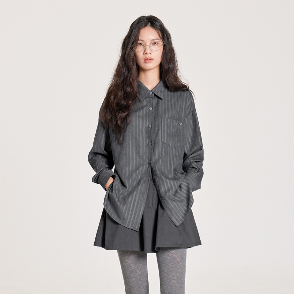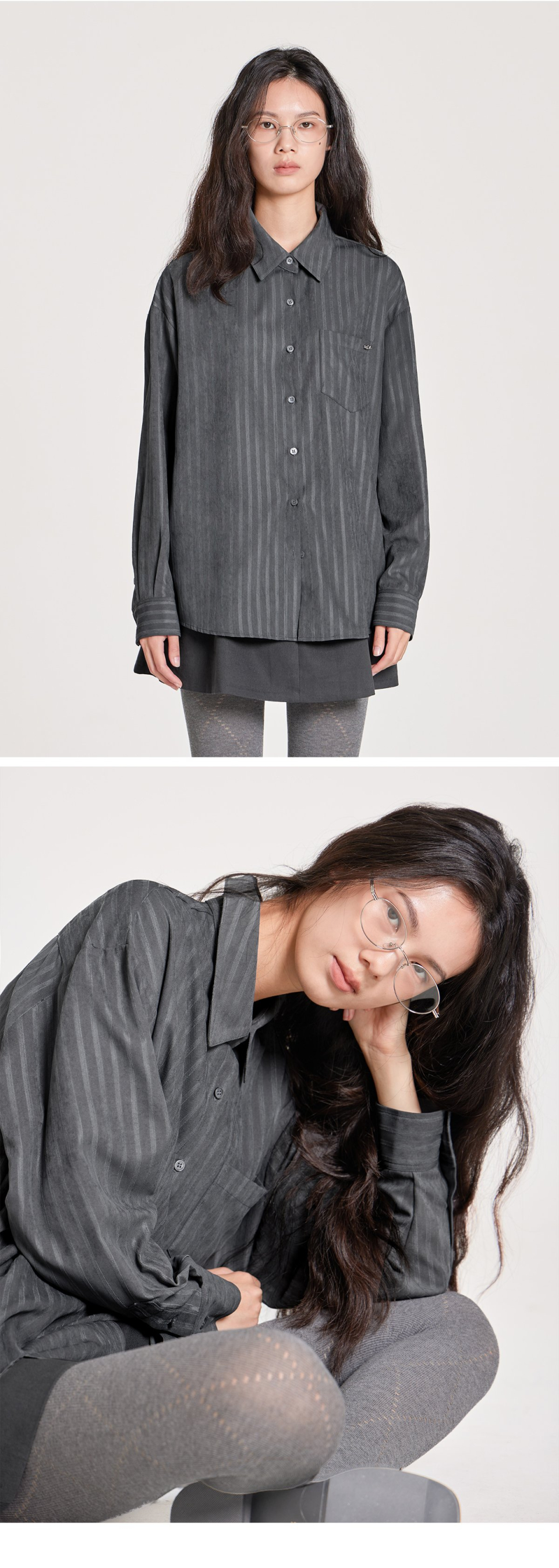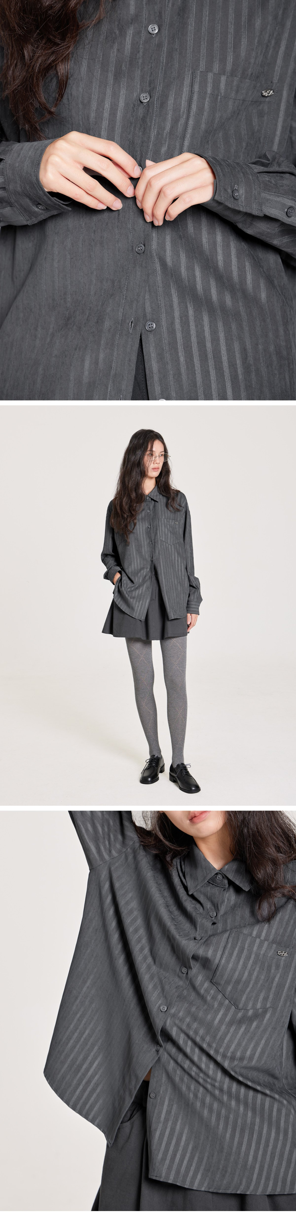 SUEDE STRIPE PENDANT SHIRT, CHAROCOAL