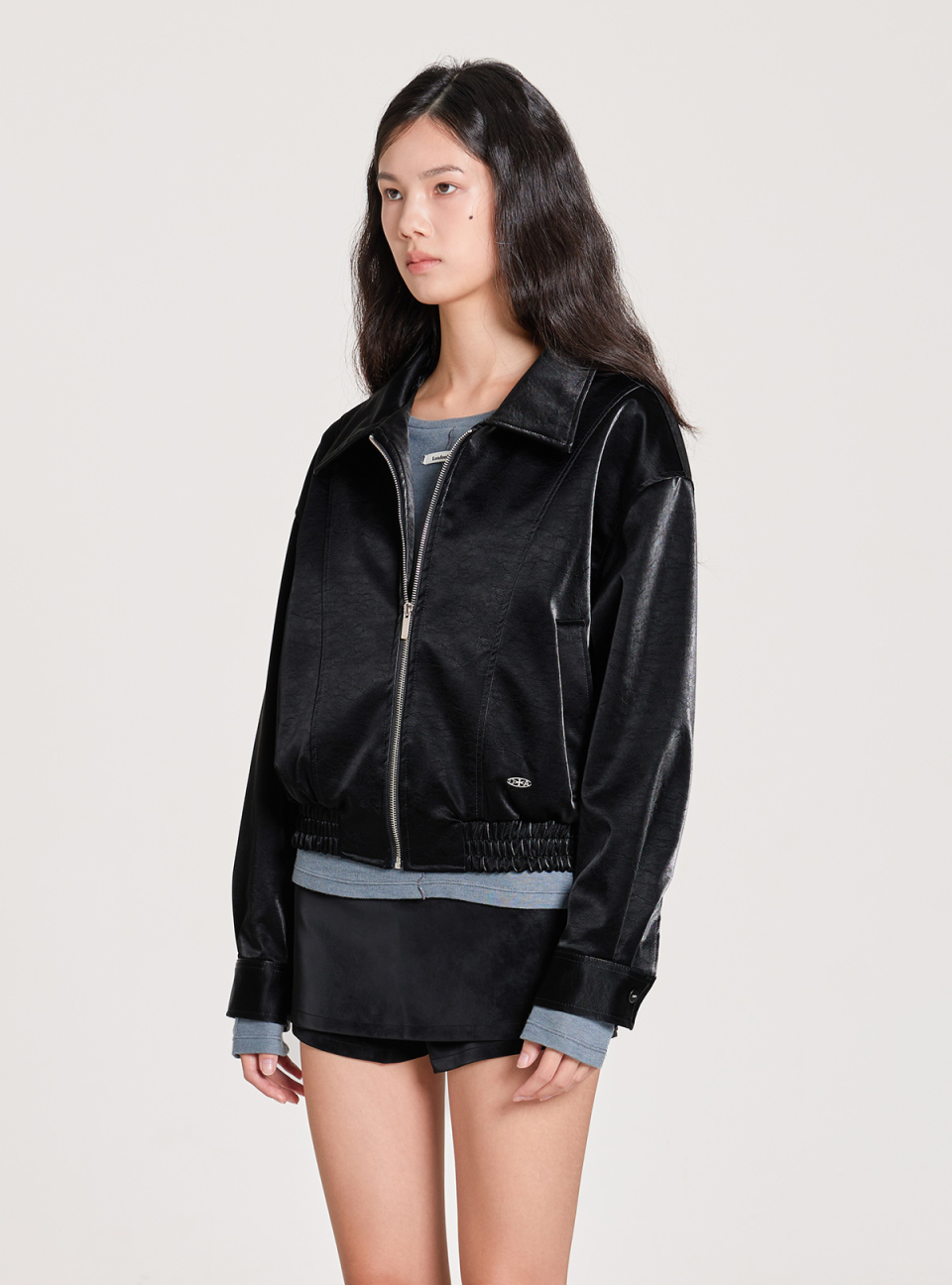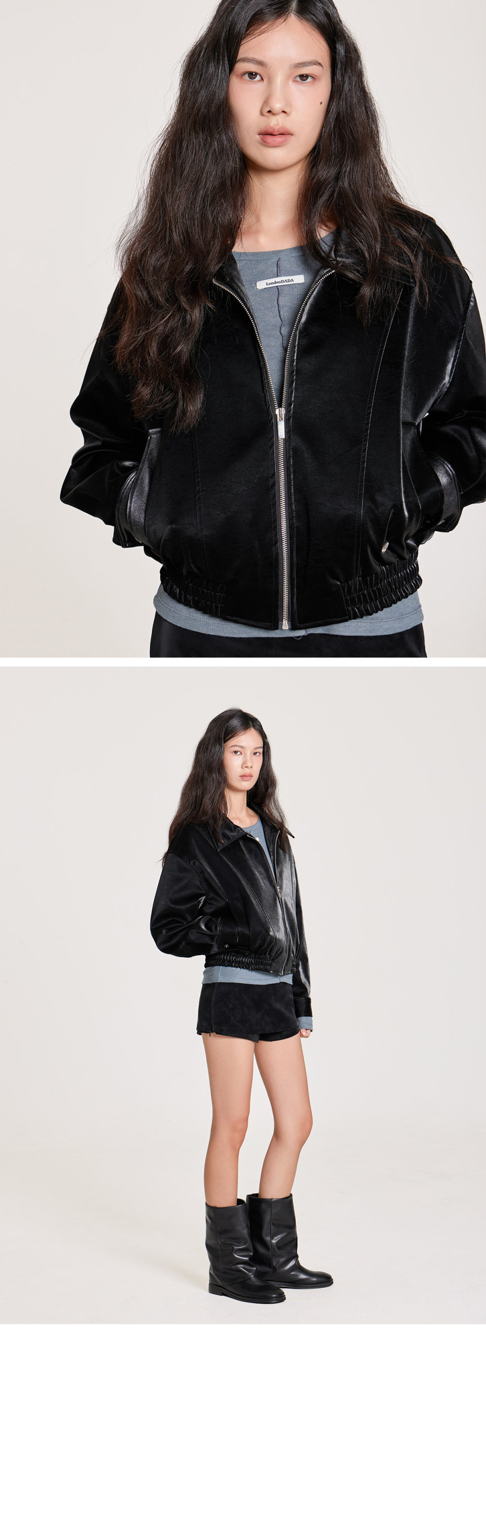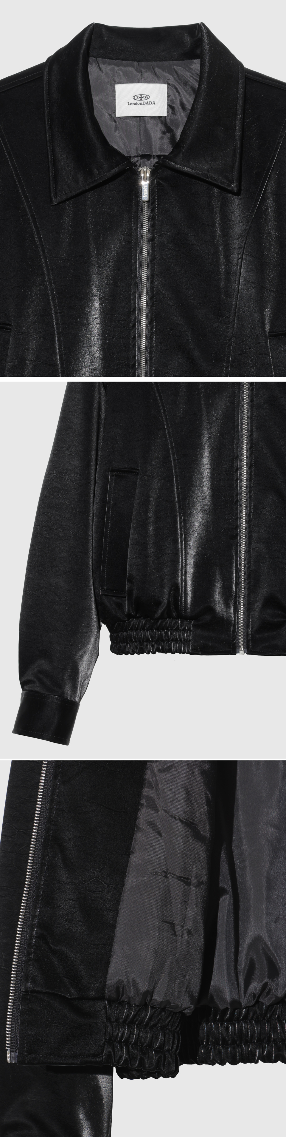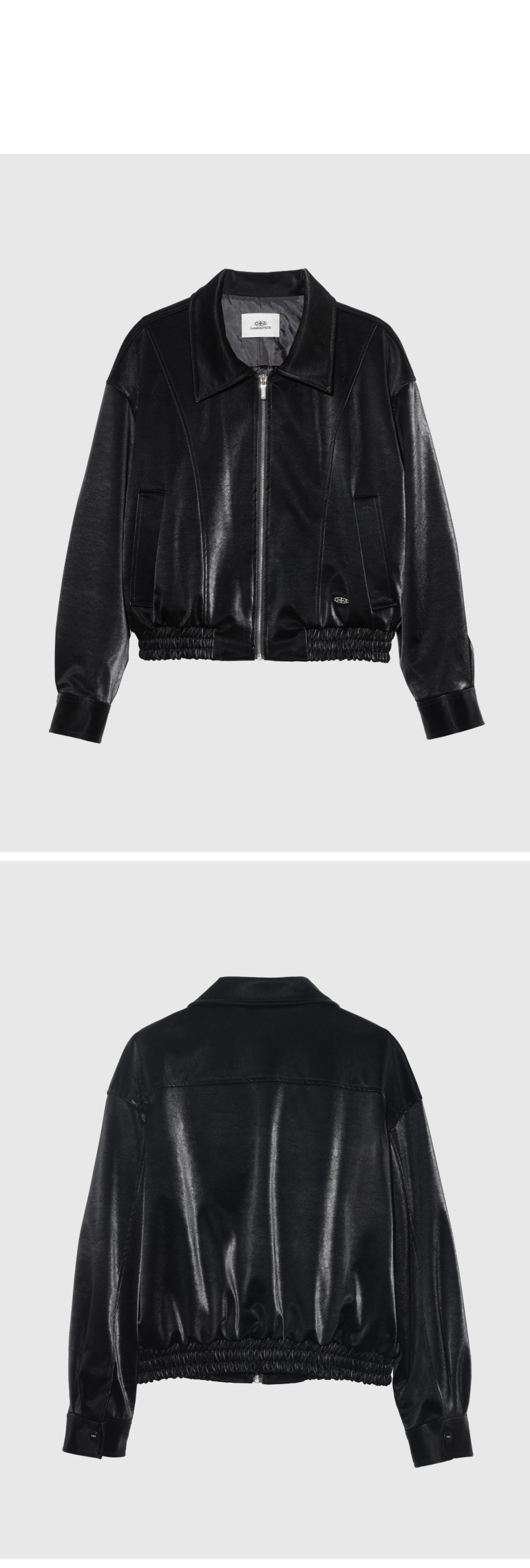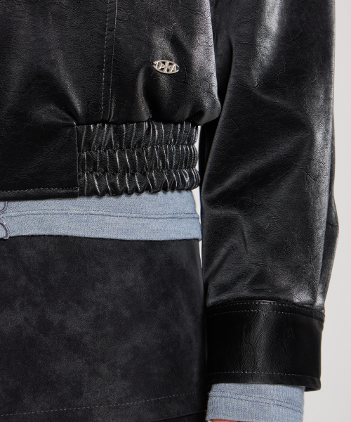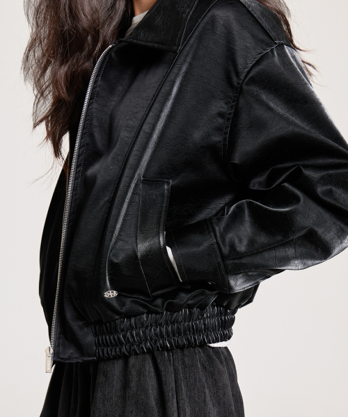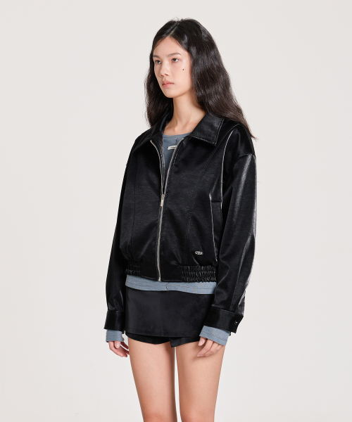VELVET LEATHER ZIP-UP BLOUSON JACKET, BLACK