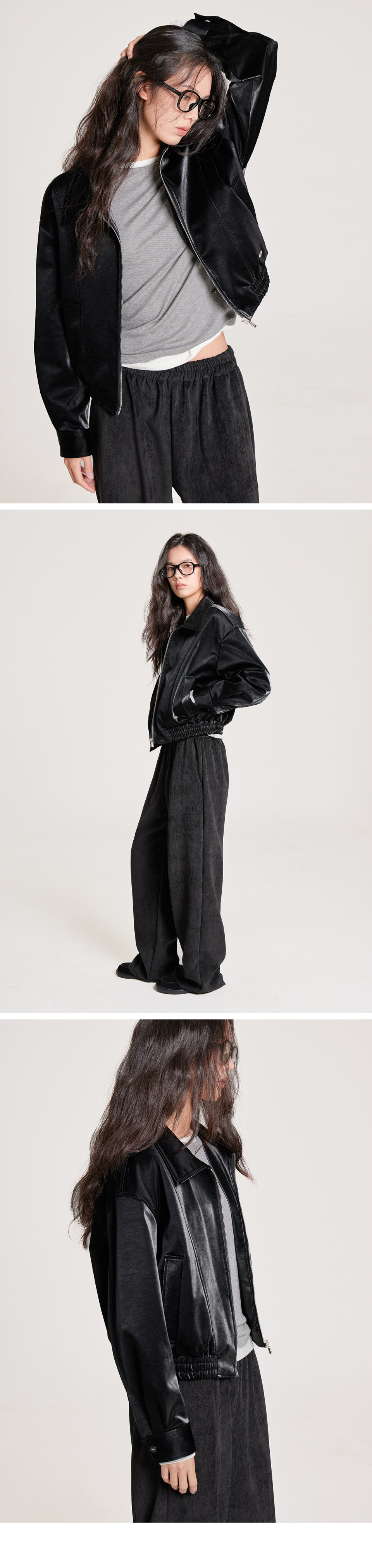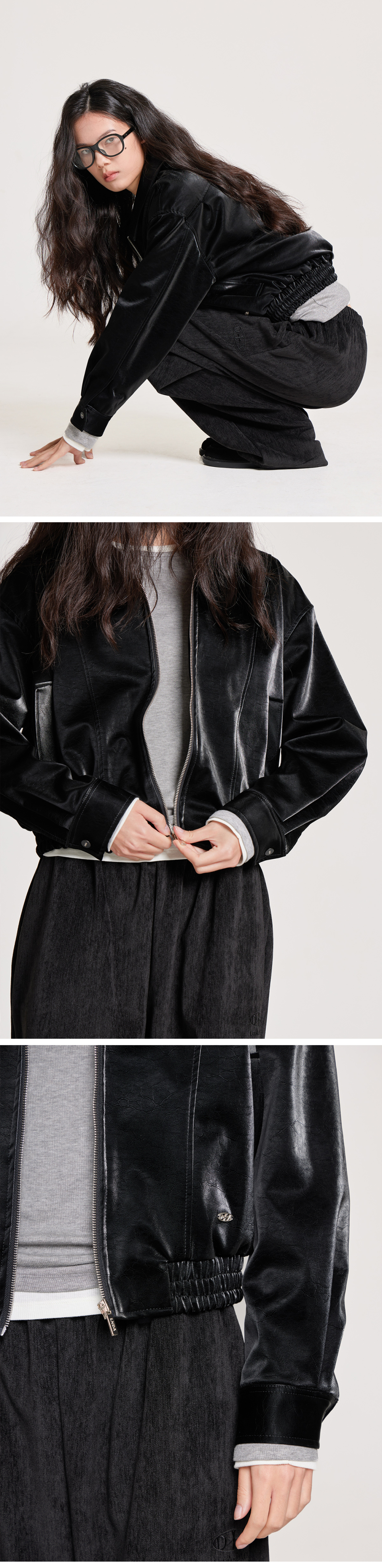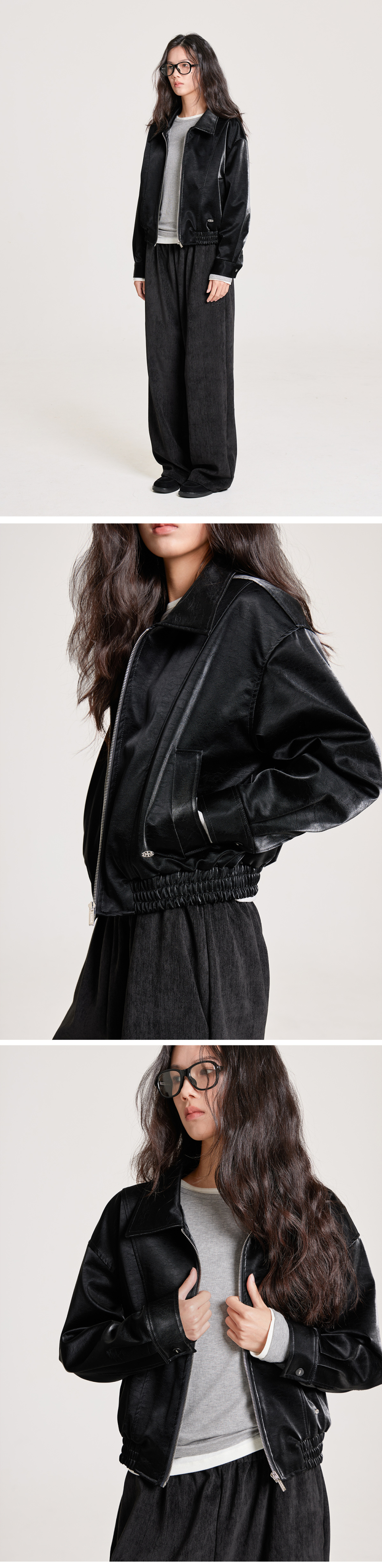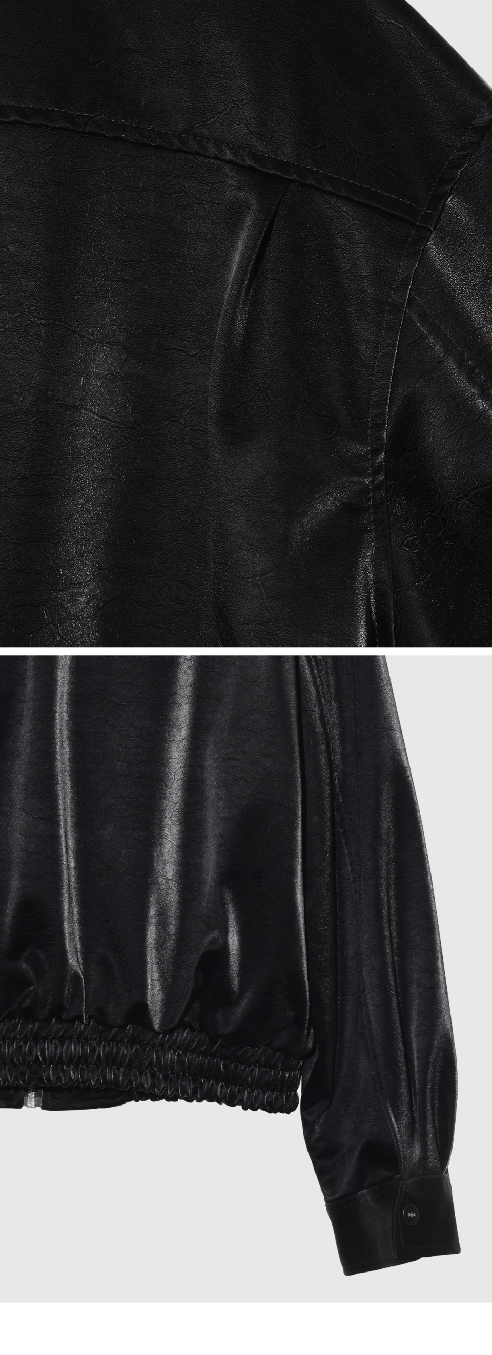 VELVET LEATHER ZIP-UP BLOUSON JACKET, BLACK
