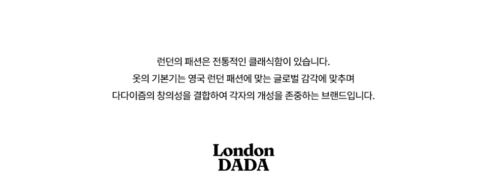 런던다다(LONDONDADA)는 런던의 절제된 클래식함과 다다이즘의 자유를 결합해, 각자의 개성을 제안하는 브랜드입니다.