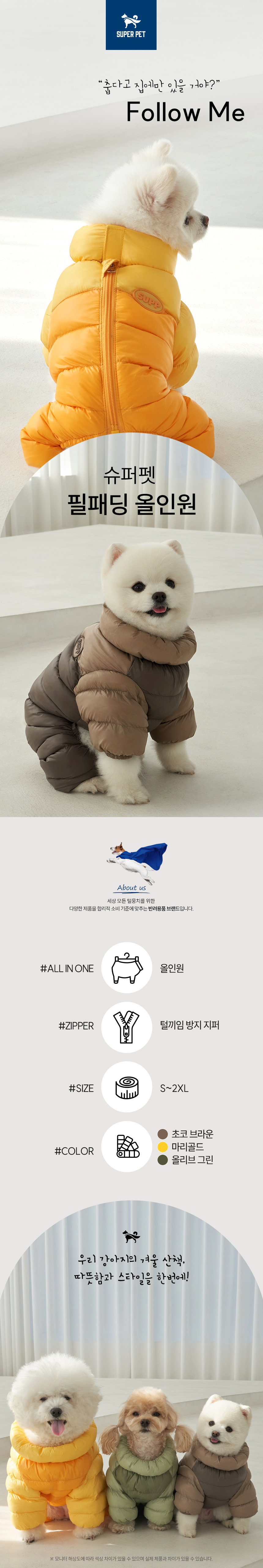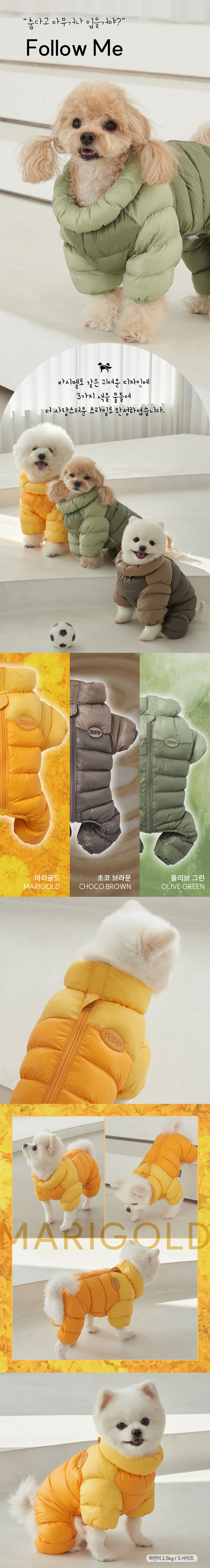 강아지 겨울옷 필패딩올인원 마리골드