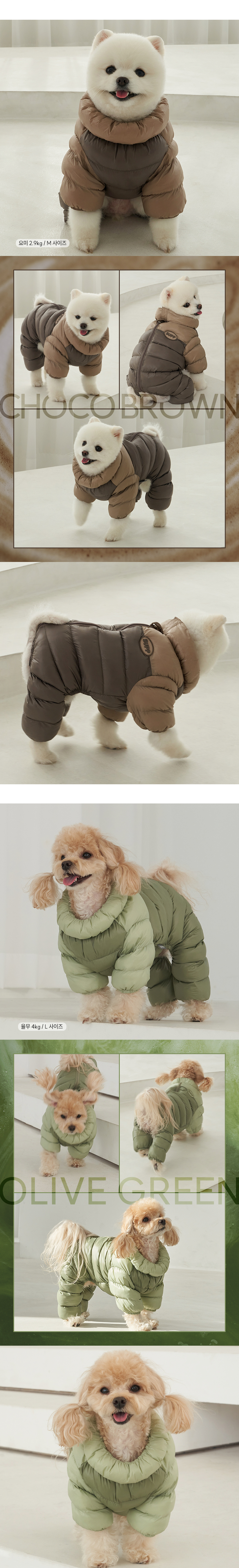 강아지 겨울옷 필패딩올인원 초코브라운