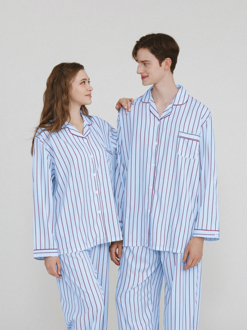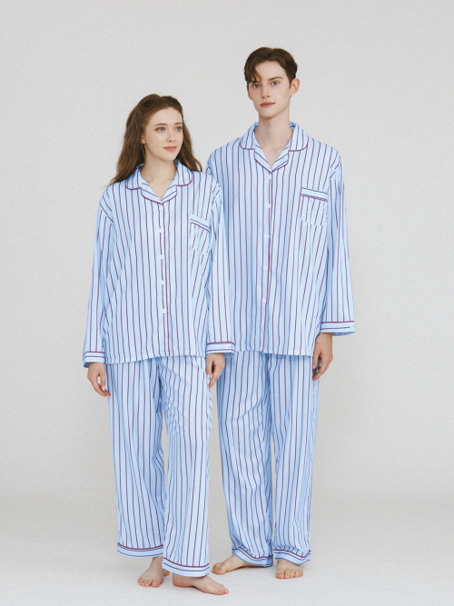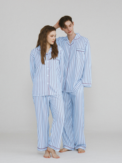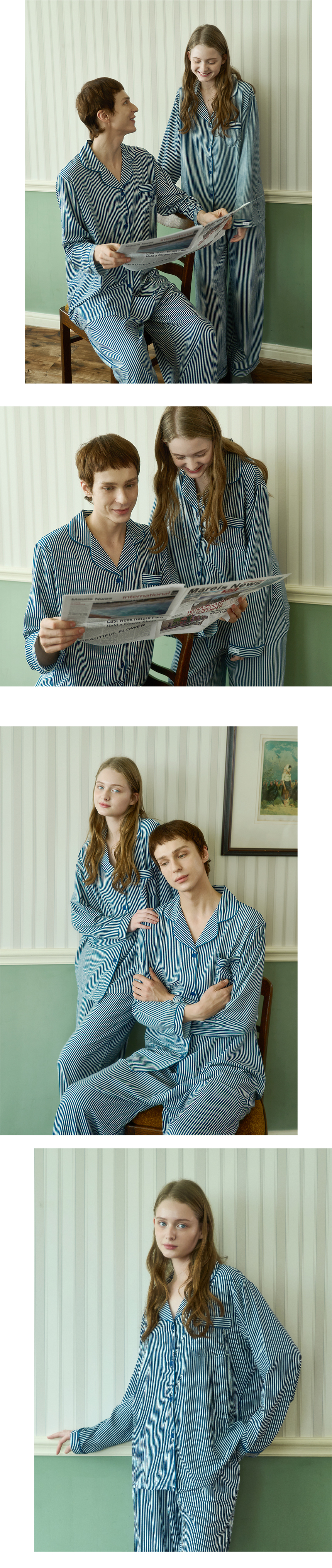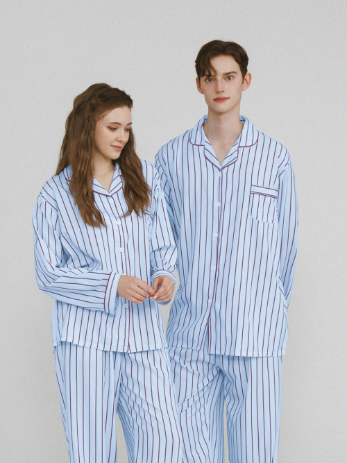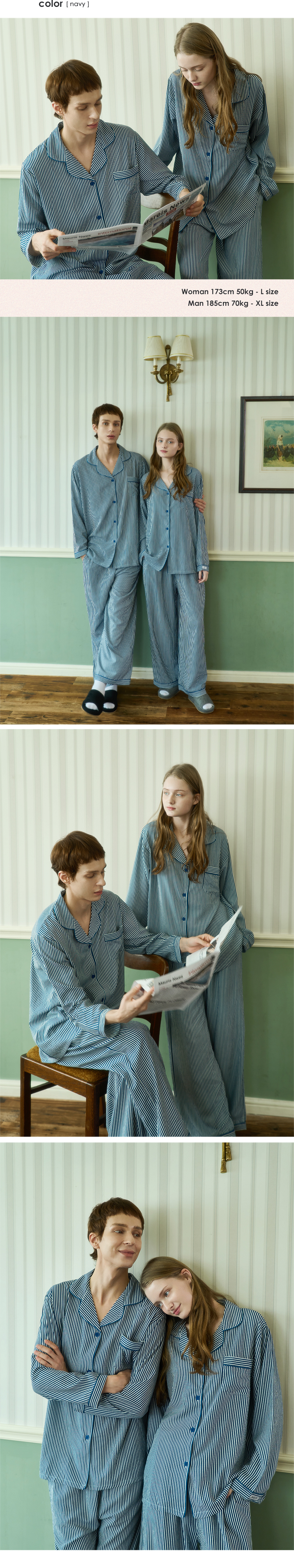 [2PACK] 코지 스트라이프 커플잠옷 긴팔 파자마 상하의 세트
