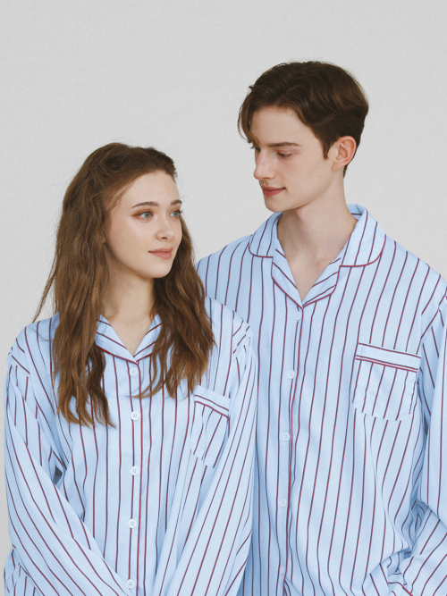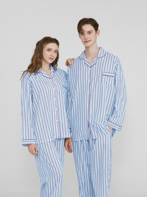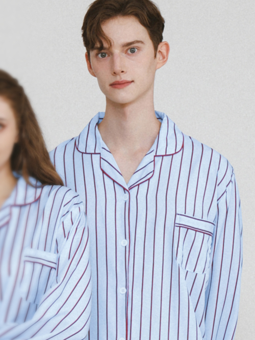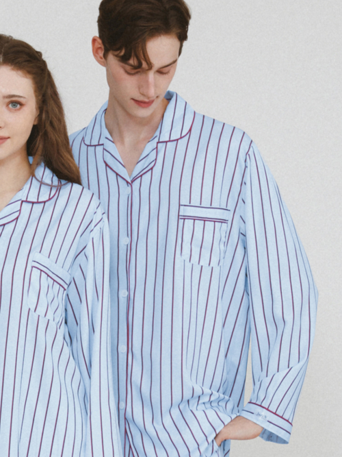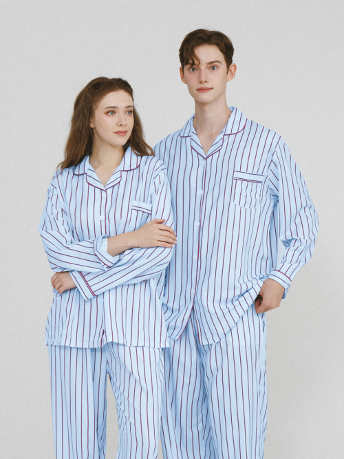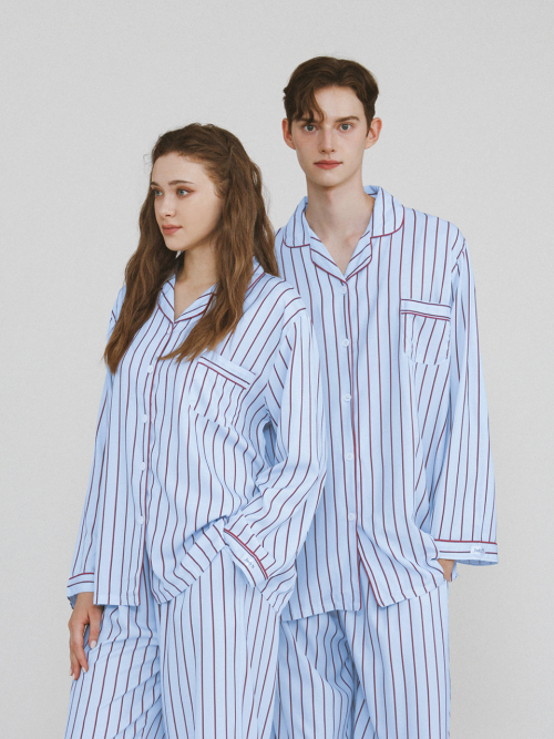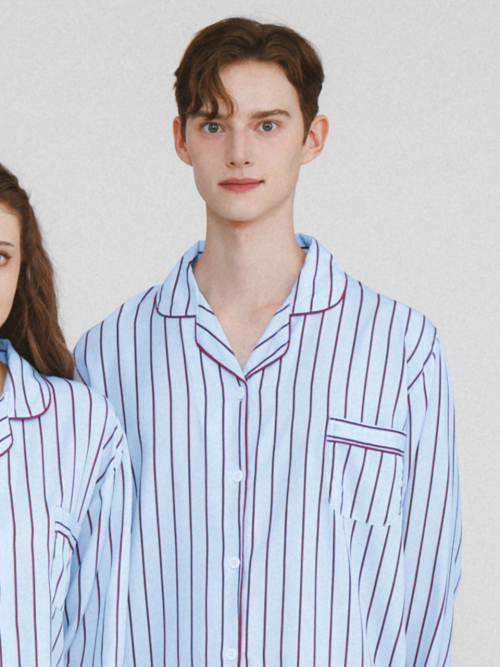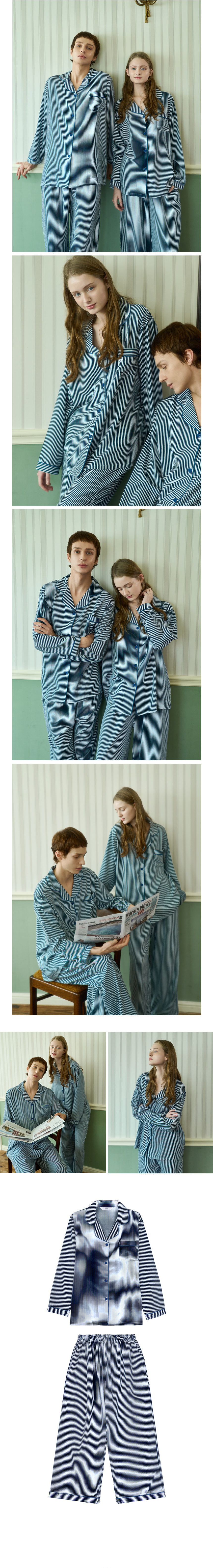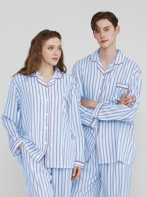 [2PACK] 코지 스트라이프 커플잠옷 긴팔 파자마 상하의 세트