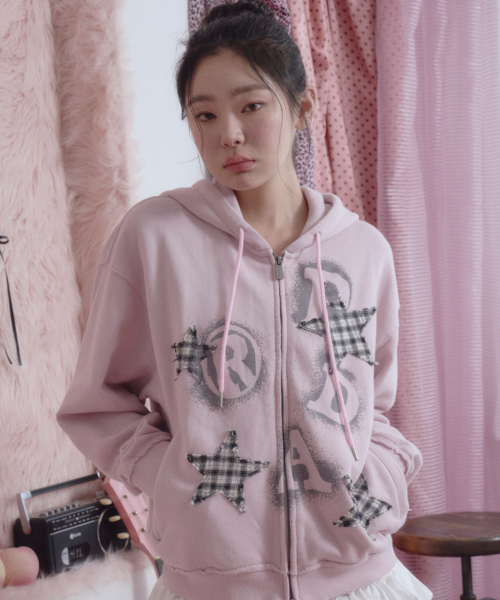 PRDA SPRAY BIG PATCH CHECK STAR HOOD ZIP-UP PINK