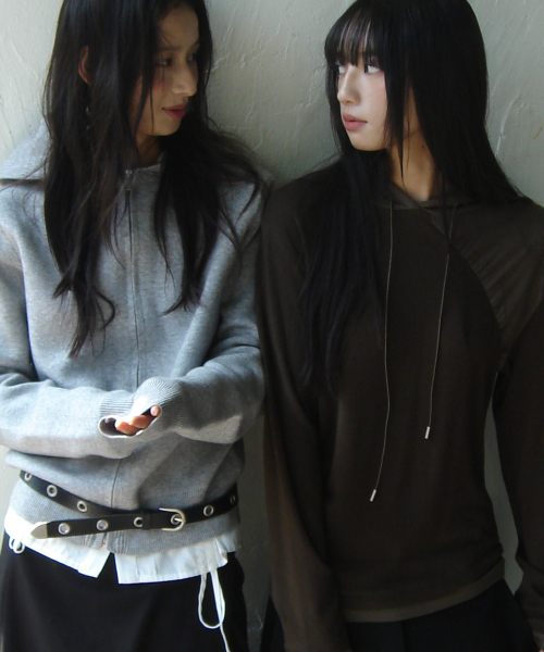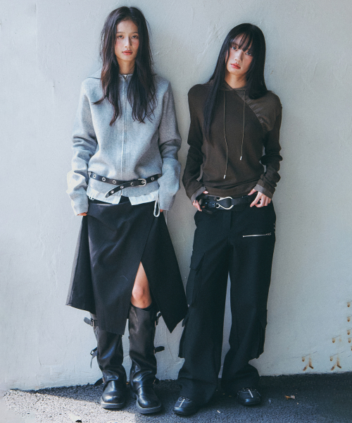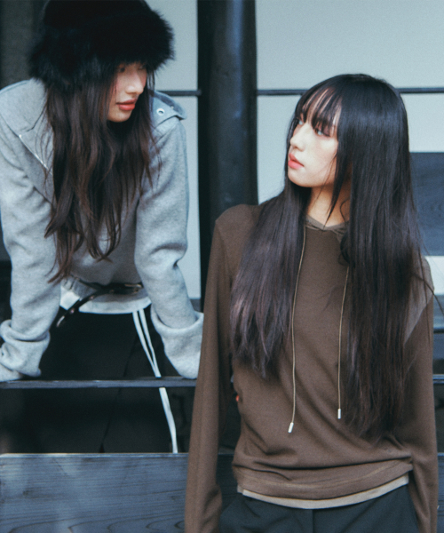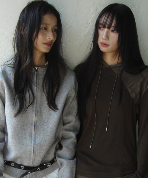 언발 컷팅 셔링 스트랩 사선 레이어드 롱슬리브리스 세트_2COLOR