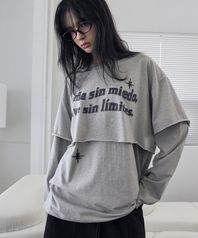 Raw Cut Layered Long Sleeve Tee Melange Gray