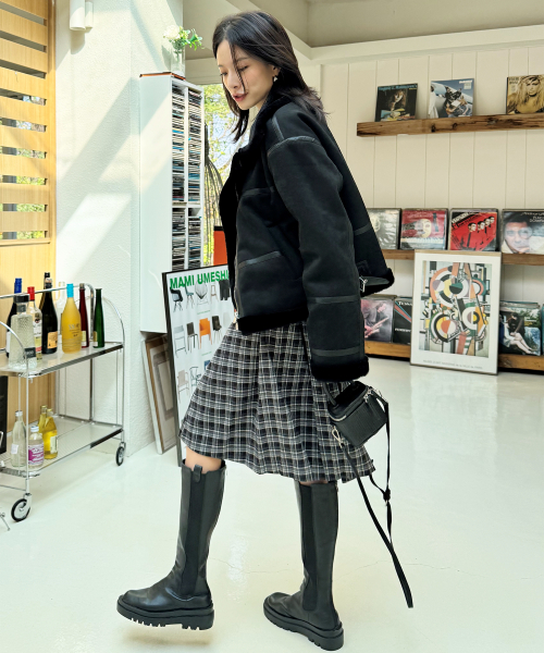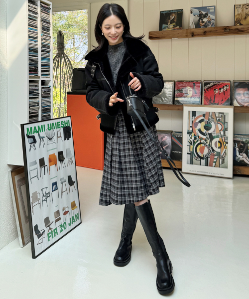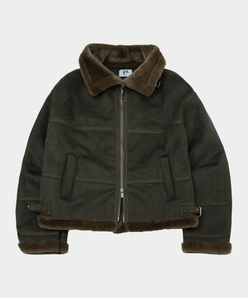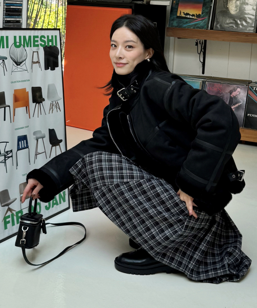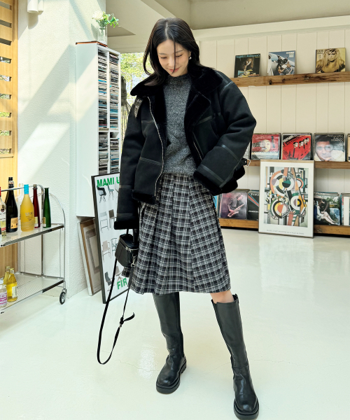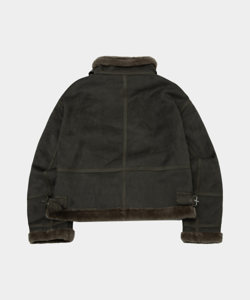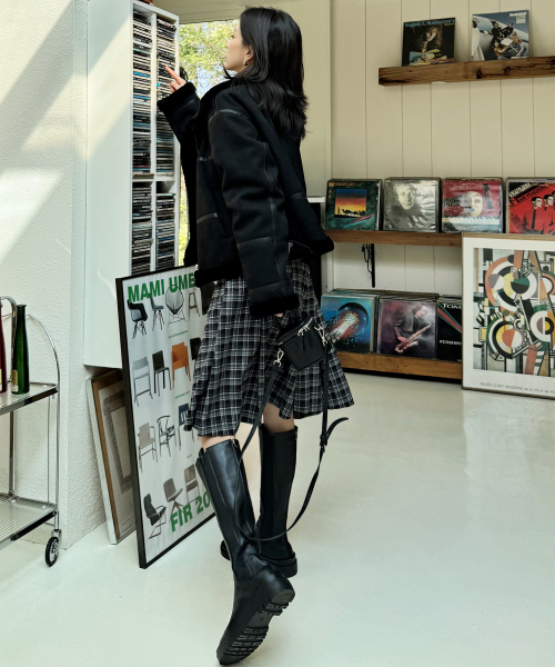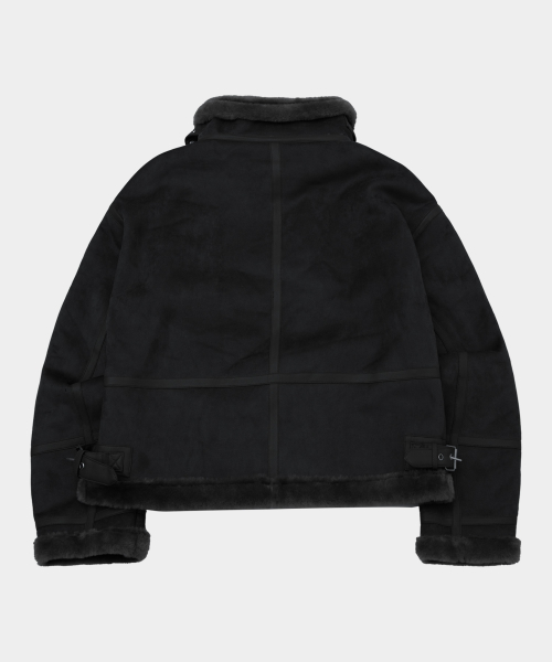 시어링 하이넥 아이렛 버클 포인트 레더라인 스웨이드 무스탕 [블랙]