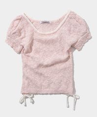사이드 리본 스트랩 포인트 퍼프 반팔 니트 탑 [핑크]
