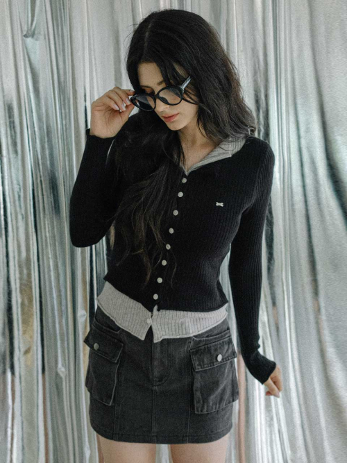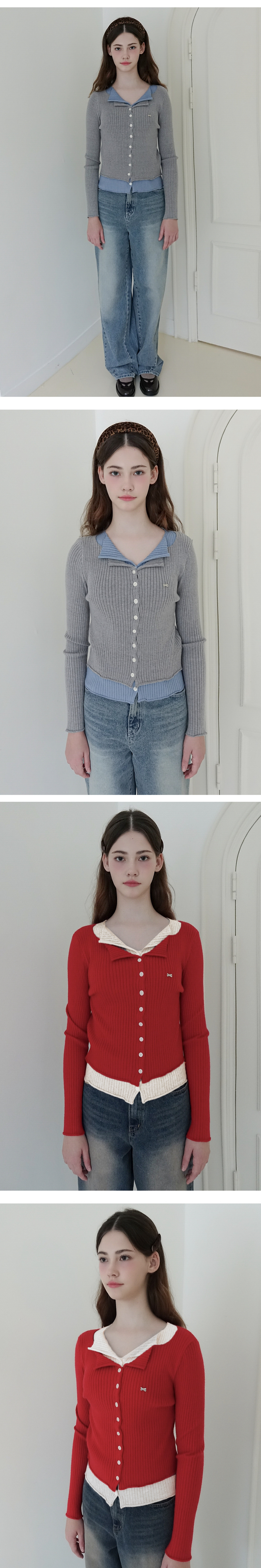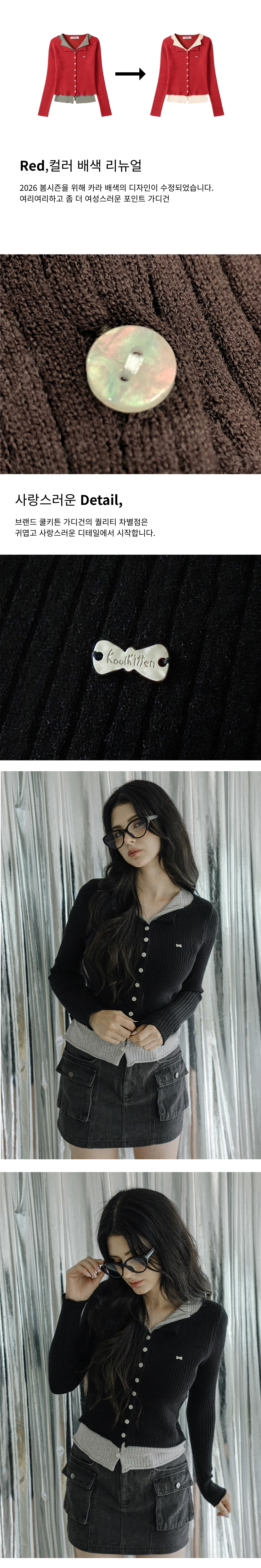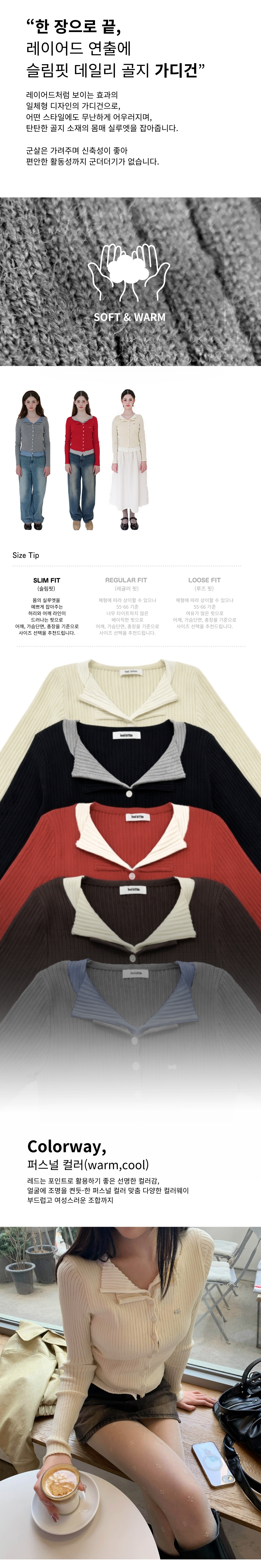 [데일리/레이어]배색 레이어드 카라 가디건 5colors