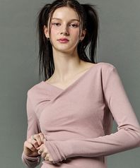 [CP] 드레이프 브이넥 오프숄더 긴팔티 롱슬리브 [PINK] 이너 ver.