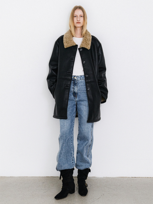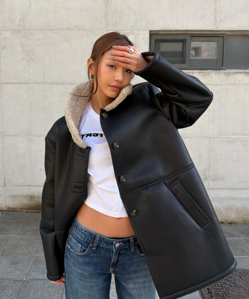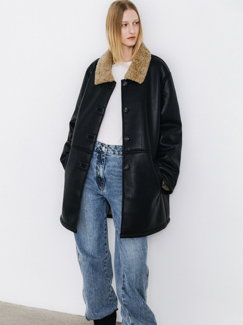 포근한 퍼 카라가 포인트인 싱글 무스탕입니다.