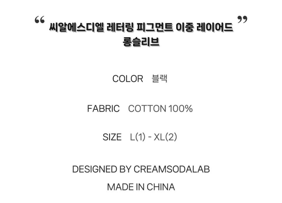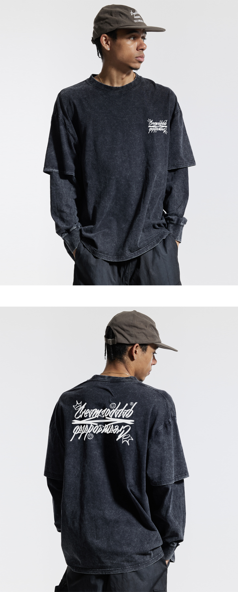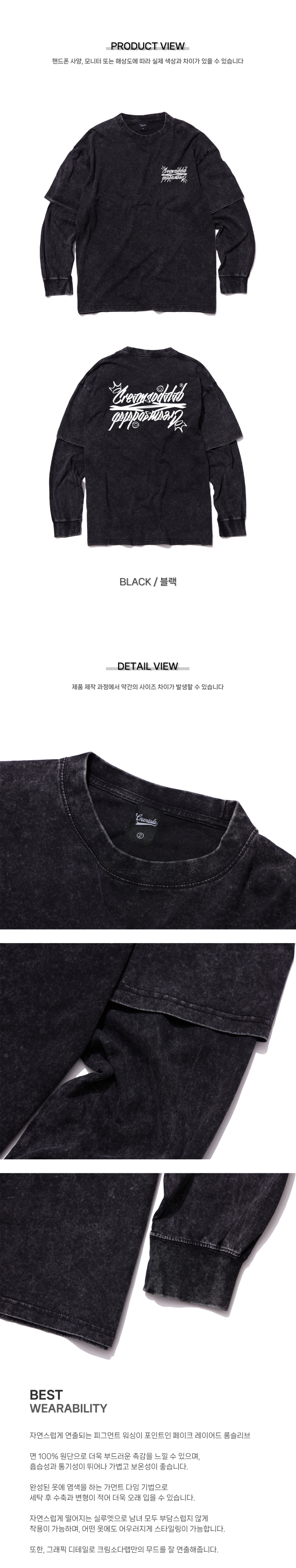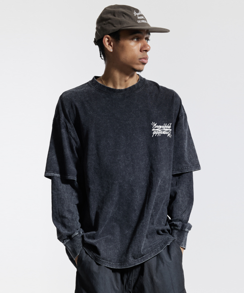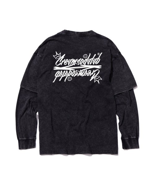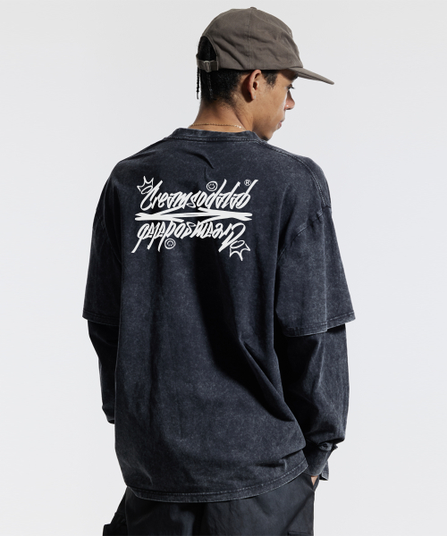 씨알에스디엘 레터링 피그먼트 페이크 이중 레이어드 롱슬리브