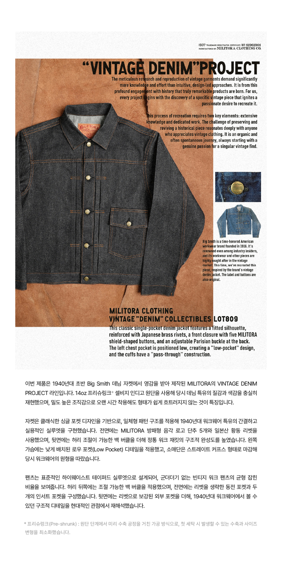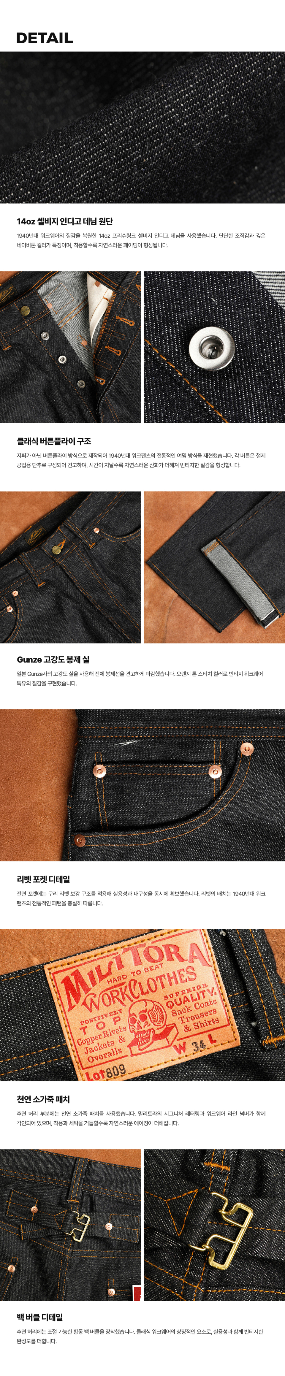 밀리토라(MILITORA)는 절제된 디테일로 강인한 매력을 표현하는 브랜드입니다. 1930년대 데님과 워크 트라우저 등 워크 웨어 기반의 의류를 현대적으로 복각합니다.