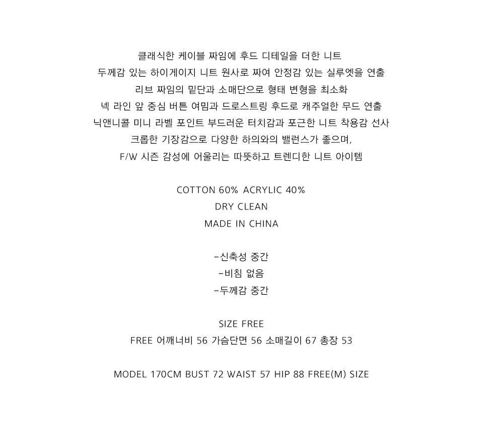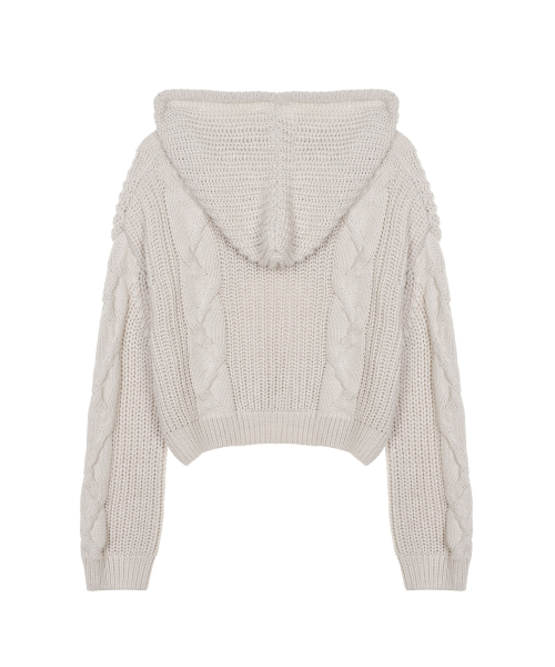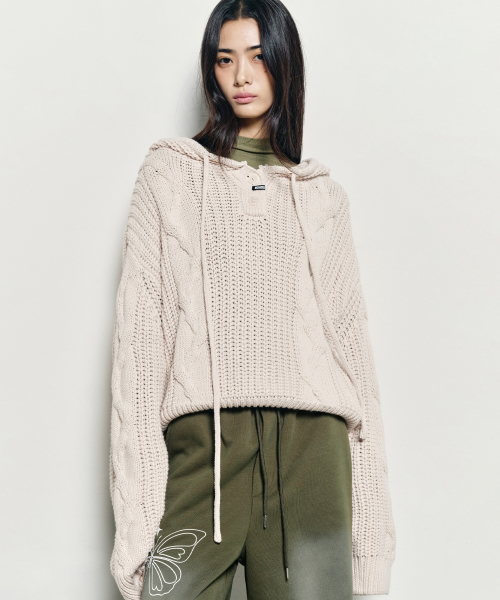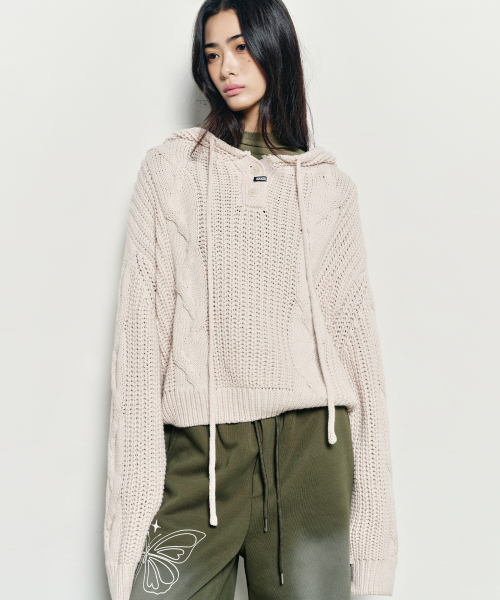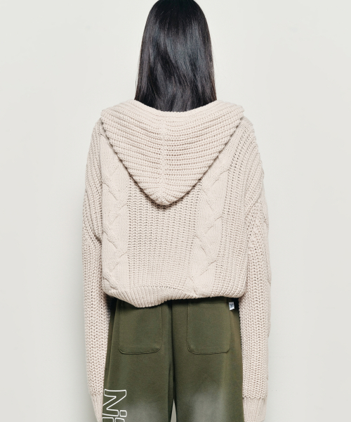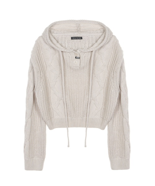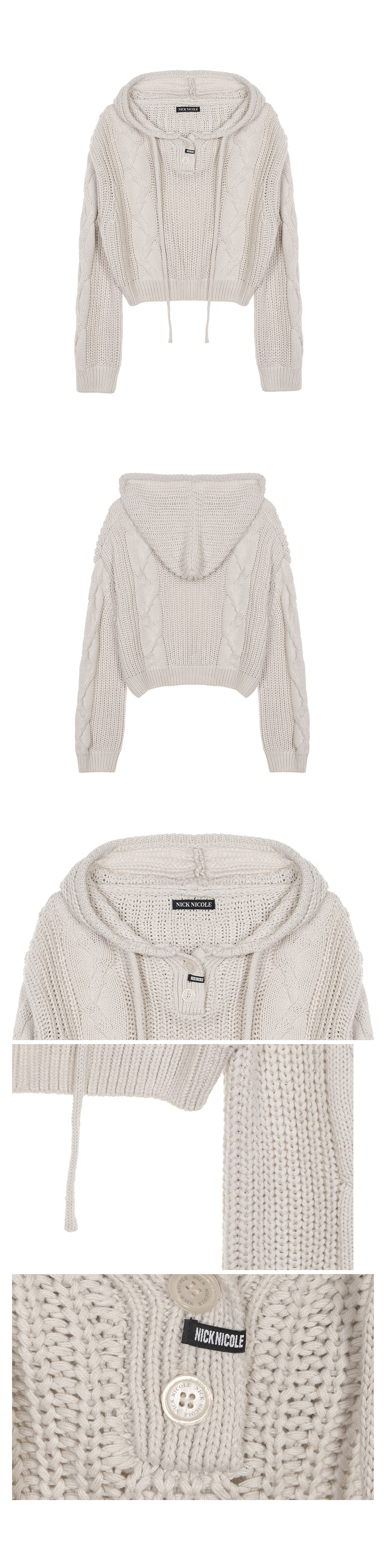 COZY BUTTON CABLE HOODIE KNIT_BEIGE