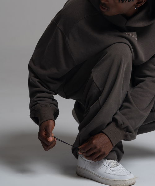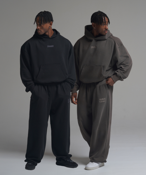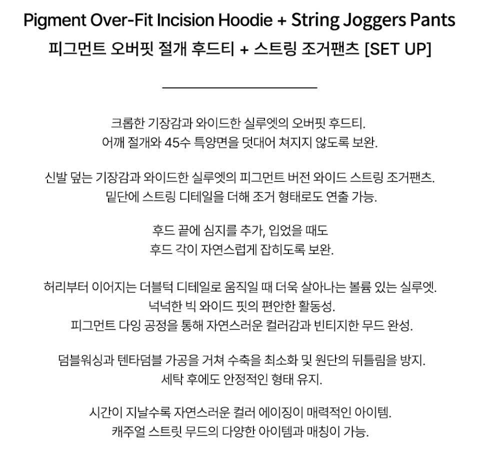 [SET] 피그먼트 오버핏 절개 후드티 + 피그먼트 오버핏 와이드 스트링 조거 팬츠 (3COLOR)