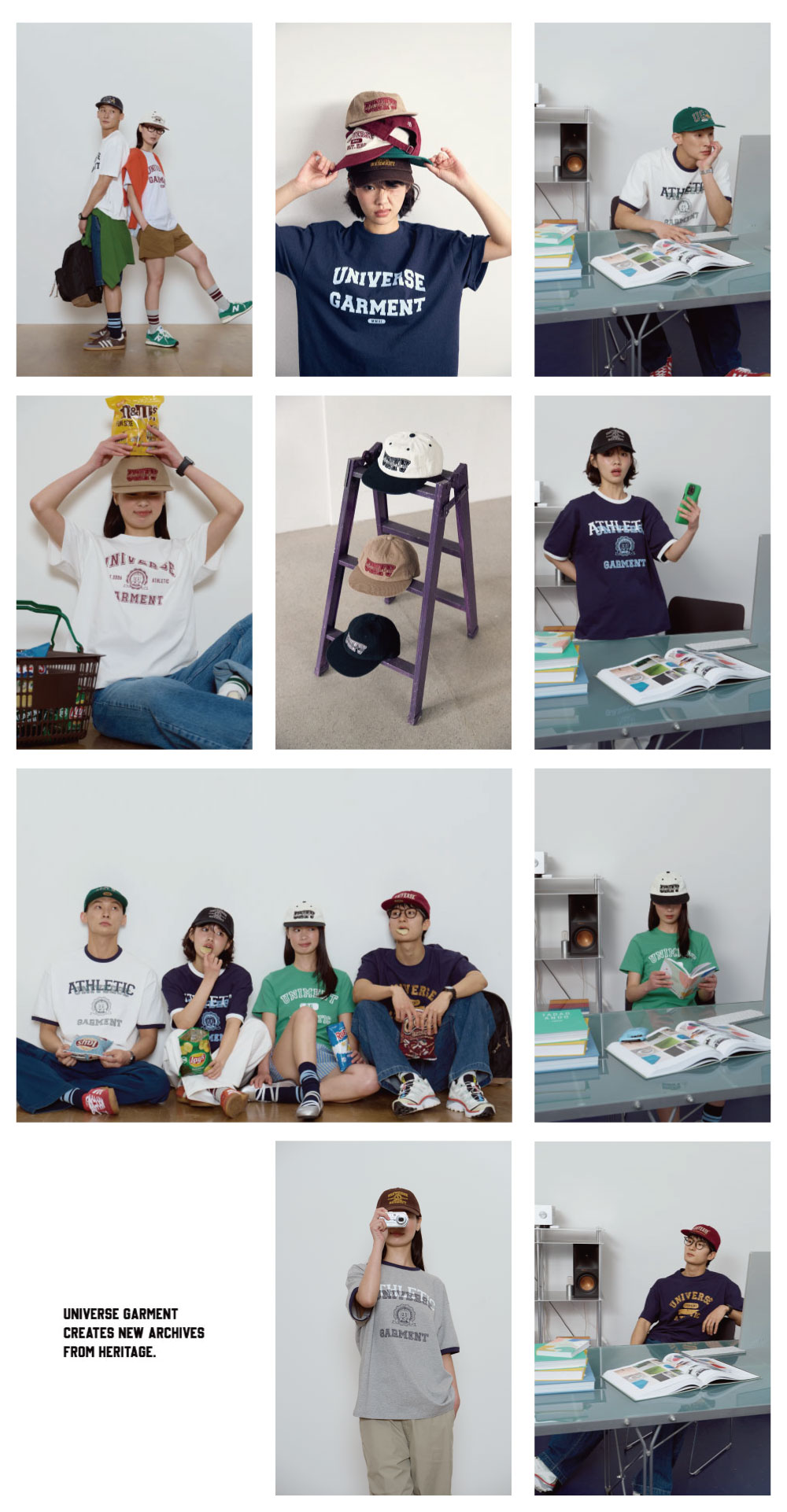 유니버스 가먼트(UNIVERSE GARMENT)는 'Re: Heritage'라는 슬로건 아래, 클래식 아이템을 재해석해 트렌디한 '뉴 헤리티지'를 선보이는 유니섹스 캐주얼 브랜드입니다.