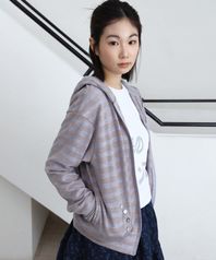 스트라이프 버튼 니트 후드 집업 (퍼플)