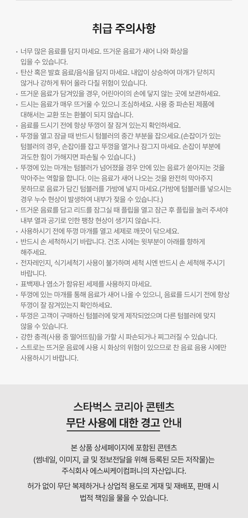 스타벅스(STARBUCKS)는 “커피 이상의 특별한 경험”을 전하며, 전 세계인의 생활 속에 스며든 글로벌 커피 브랜드입니다. 일상을 풍요롭게 하는 다양한 라이프스타일 제품을 선보입니다.