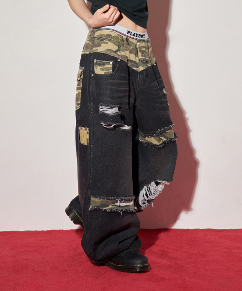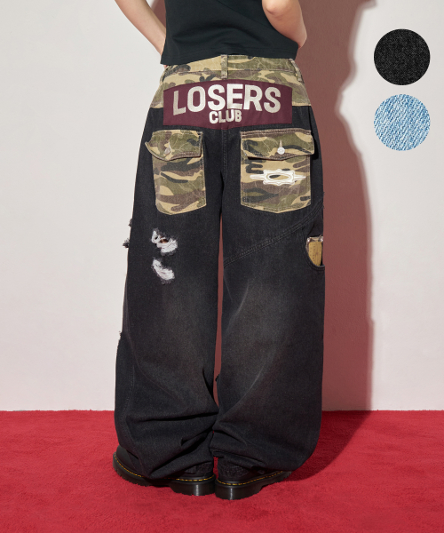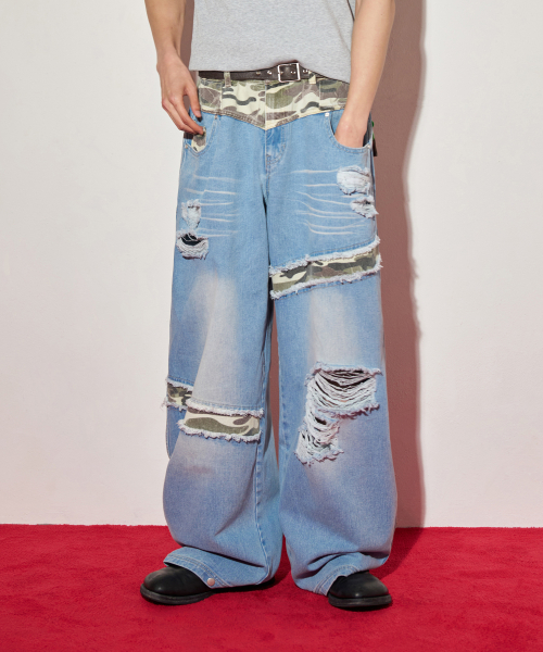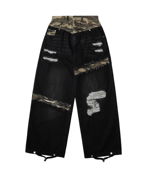 카모 믹스 데미지 와이드 데님팬츠 ( 2 Colors )