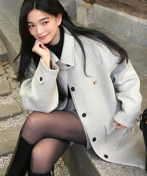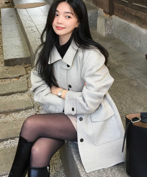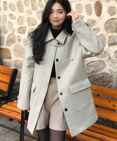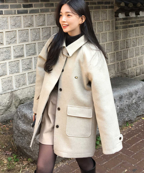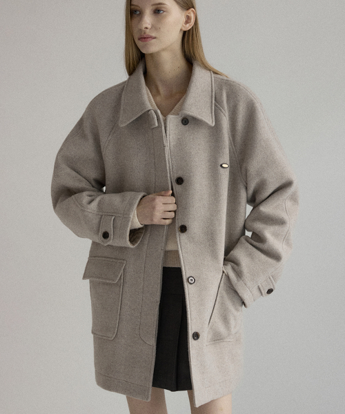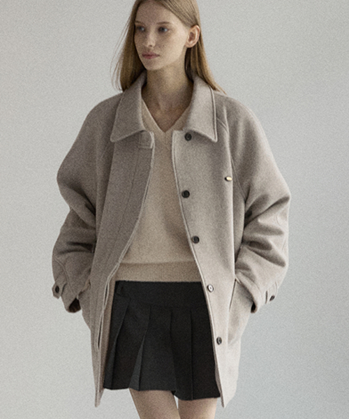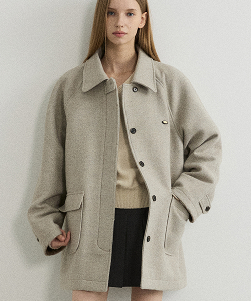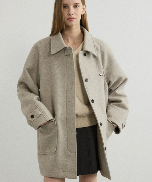 루이즈 헤링본 울 하프 코트 - 오트밀