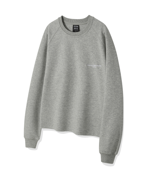 뒷 프린팅 포인트 맨투맨 크롭 티셔츠[화이트멜란지]
