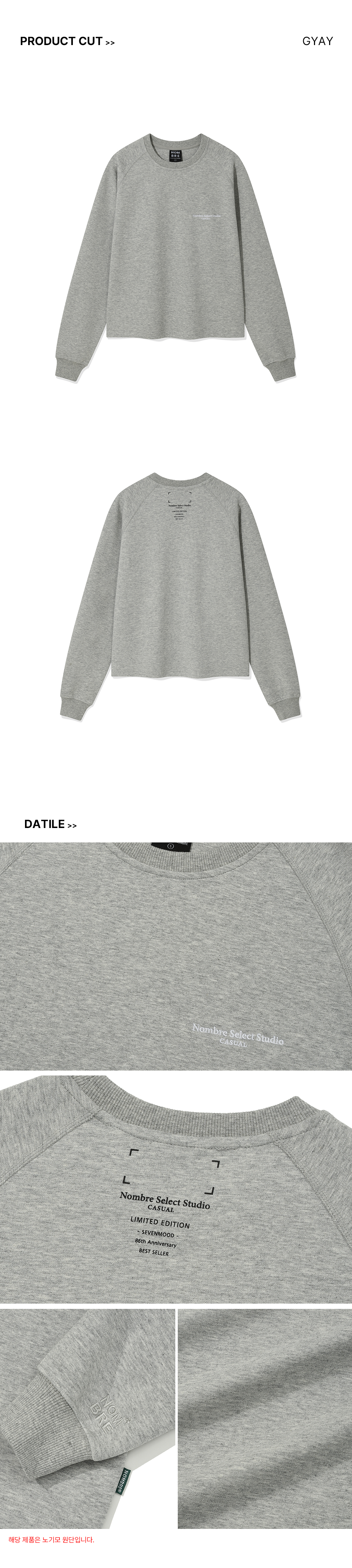 뒷 프린팅 포인트 맨투맨 크롭 티셔츠[그레이]