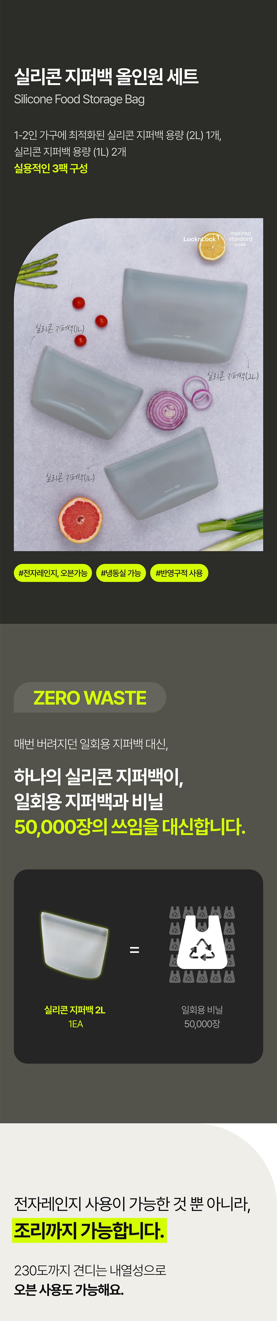 [락앤락 컬래버]실리콘 지퍼백 올인원팩
