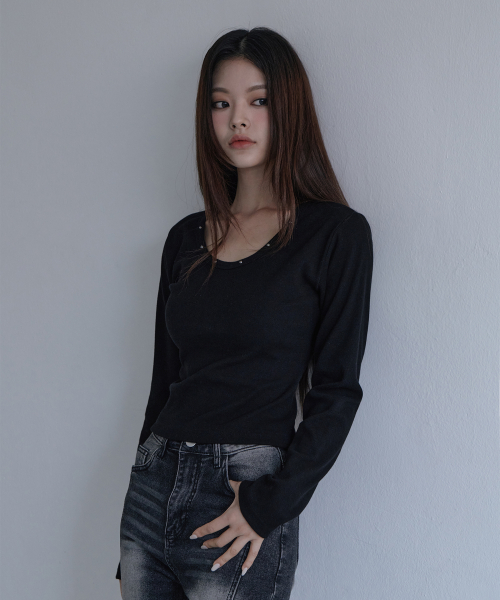 스퀘어 헨리넥 스티치 티셔츠 [4color]
