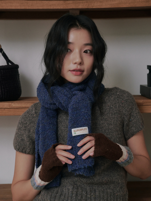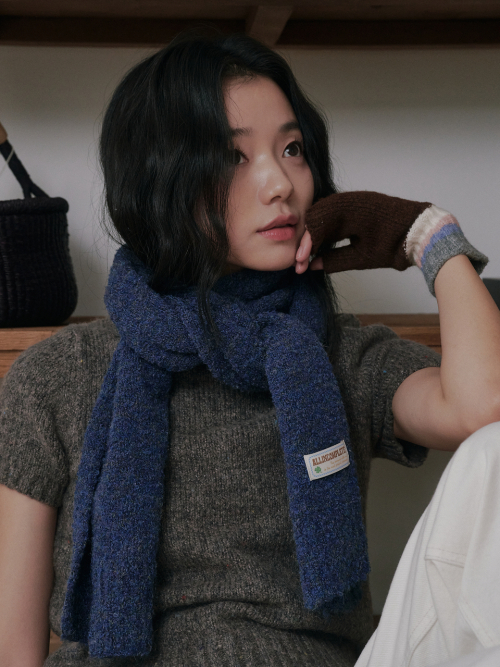 버블 부클 니트 머플러 (딥 블루)
