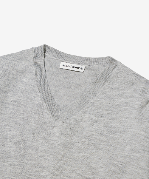 크롭 브이넥 니트 [그레이]