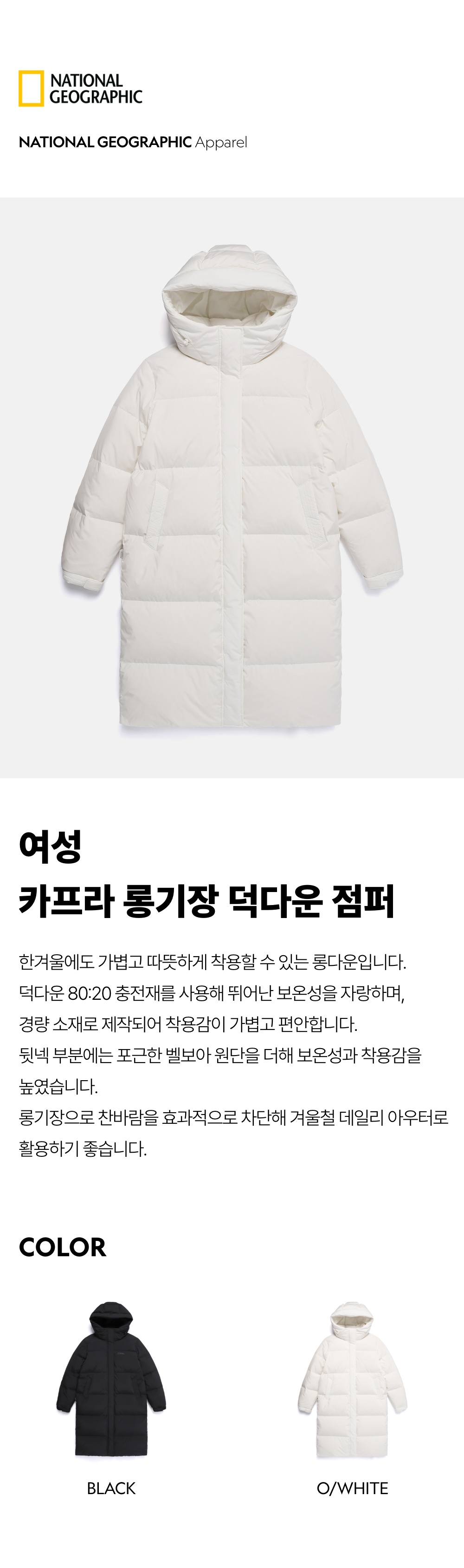 N254WDW861 여성 카프라 롱기장 덕다운 점퍼 O/WHITE