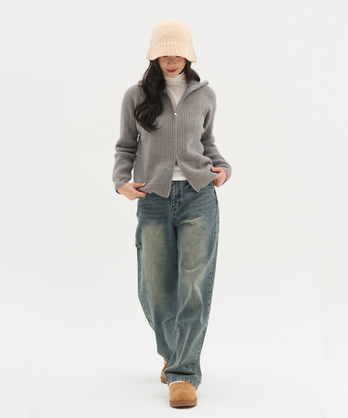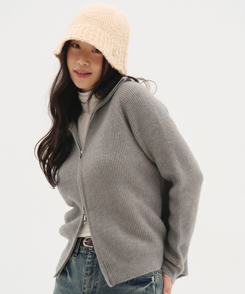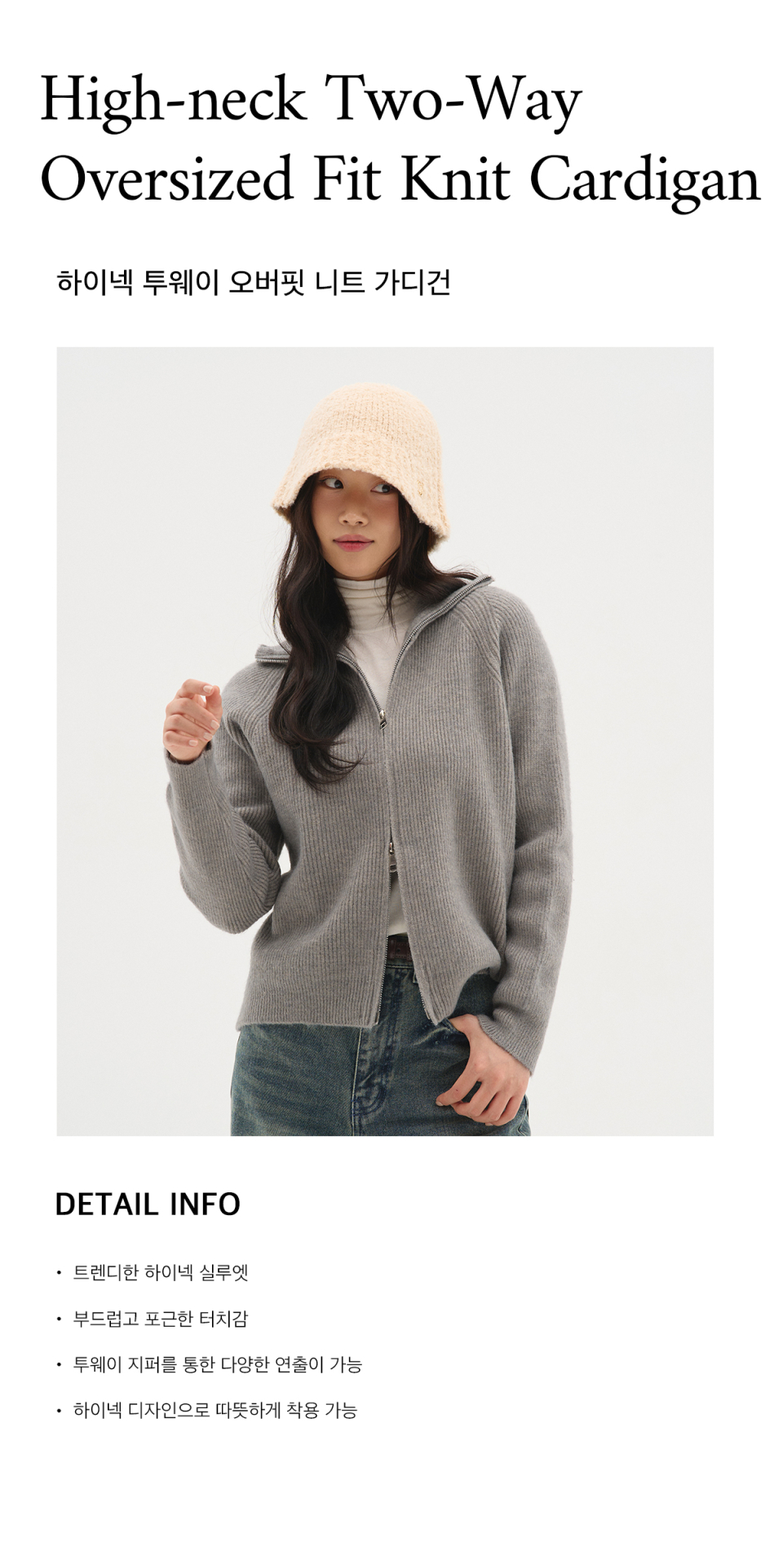 하이넥 투웨이 오버핏 니트 가디건_차콜