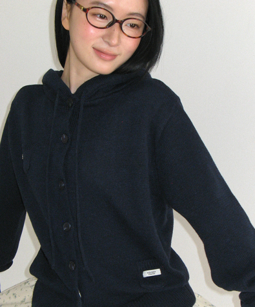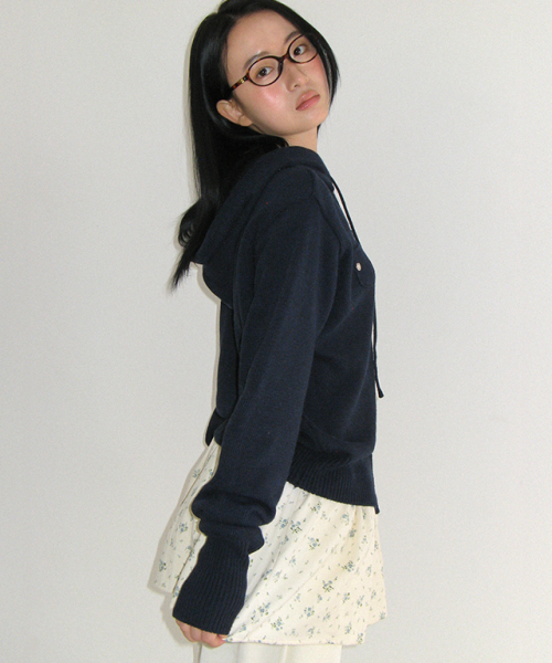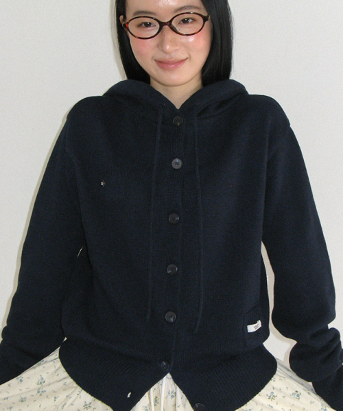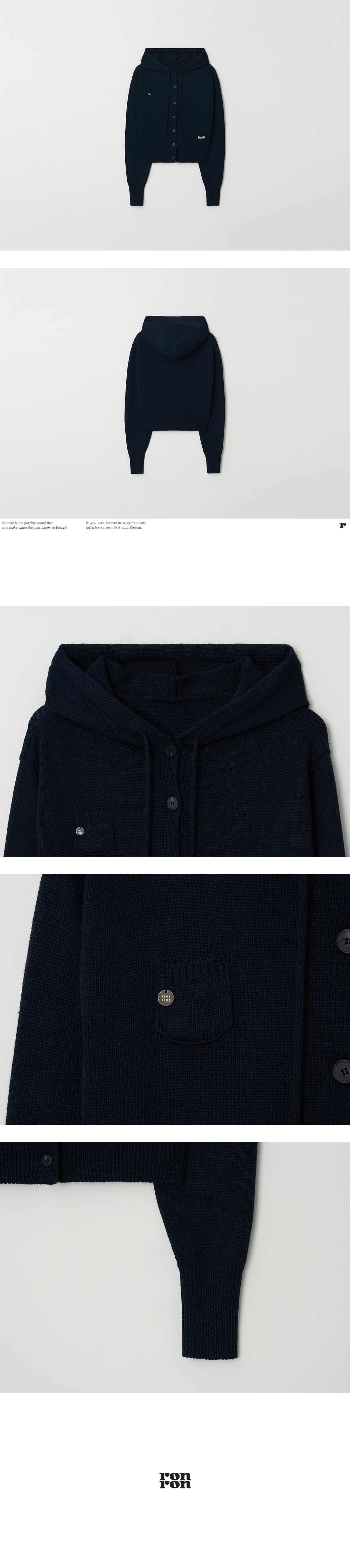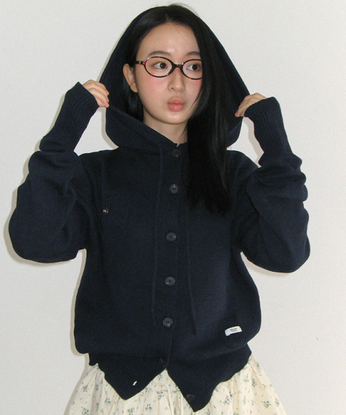 MINI POCKET HOODED KNIT CARDIGAN NAVY