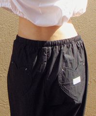 BACK HEART STITCH POCKET BANDING PANTS BLACK