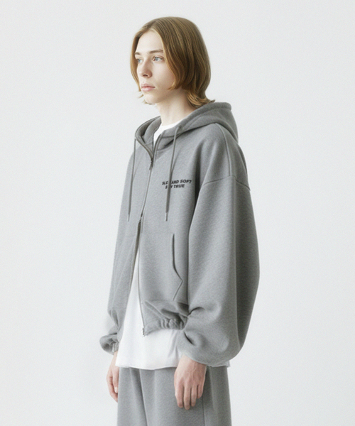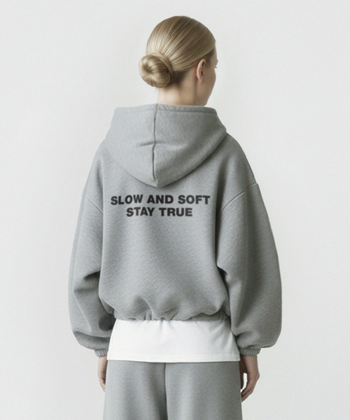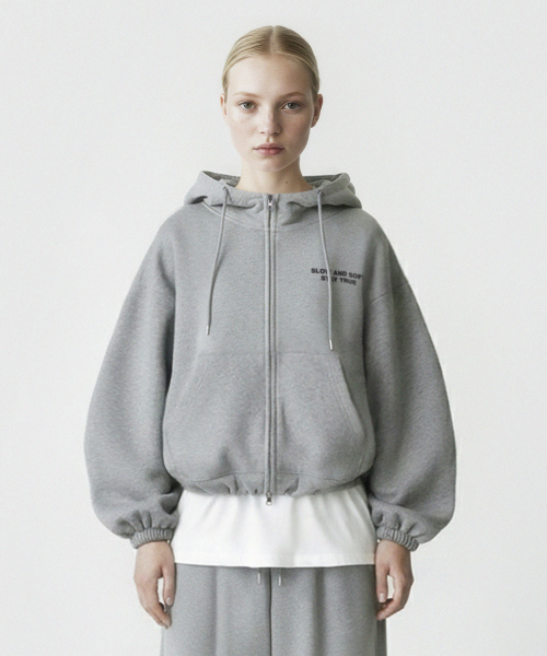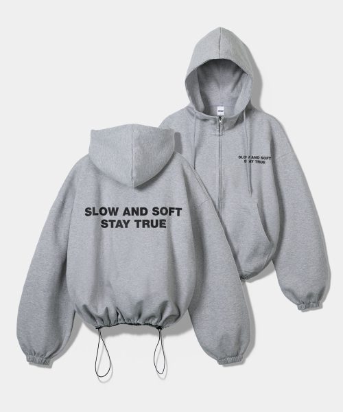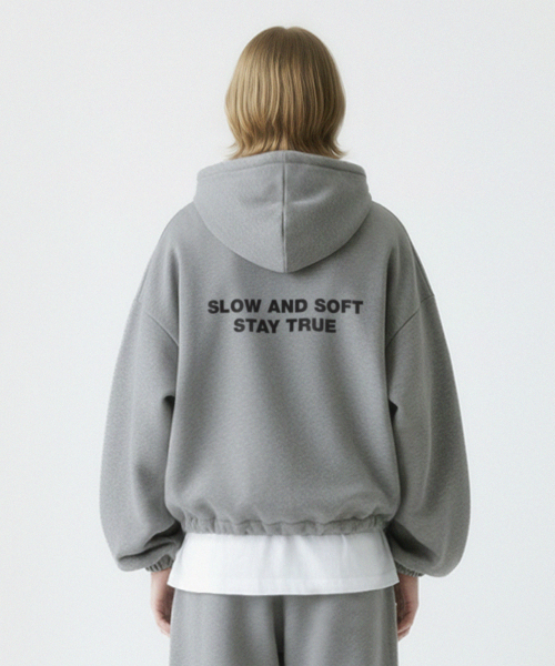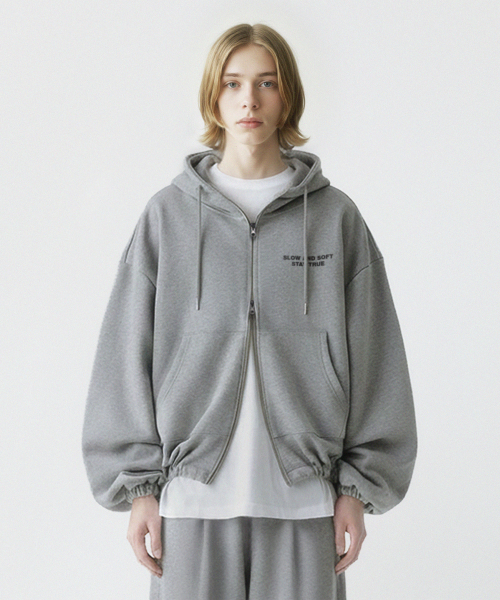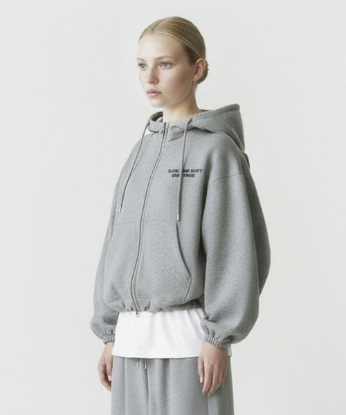 슬로우 앤드 소프트 스트링 오버핏 투웨이 후드집업 - 멜란지