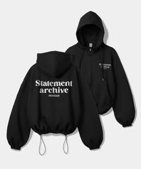 스테이트먼트 스트링 오버핏 투웨이 후드집업 - 블랙