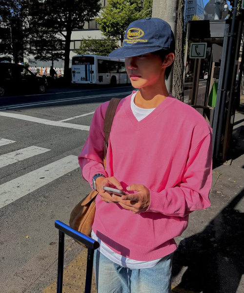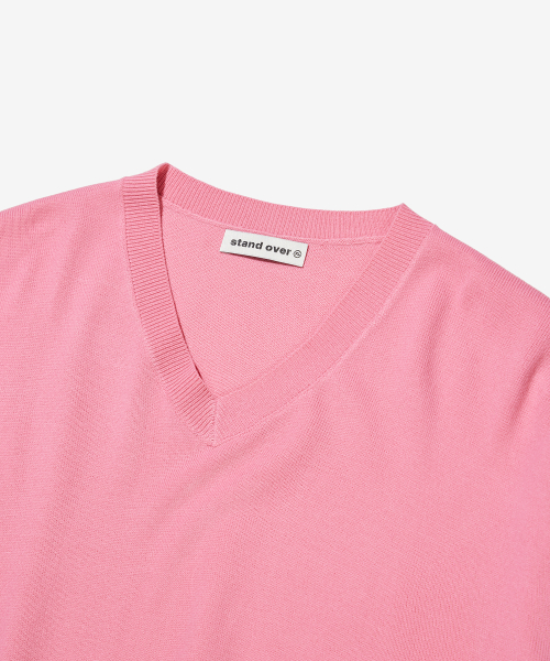 크롭 브이넥 니트 [더스티 로즈]