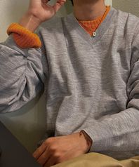 크롭 브이넥 니트 [그레이]