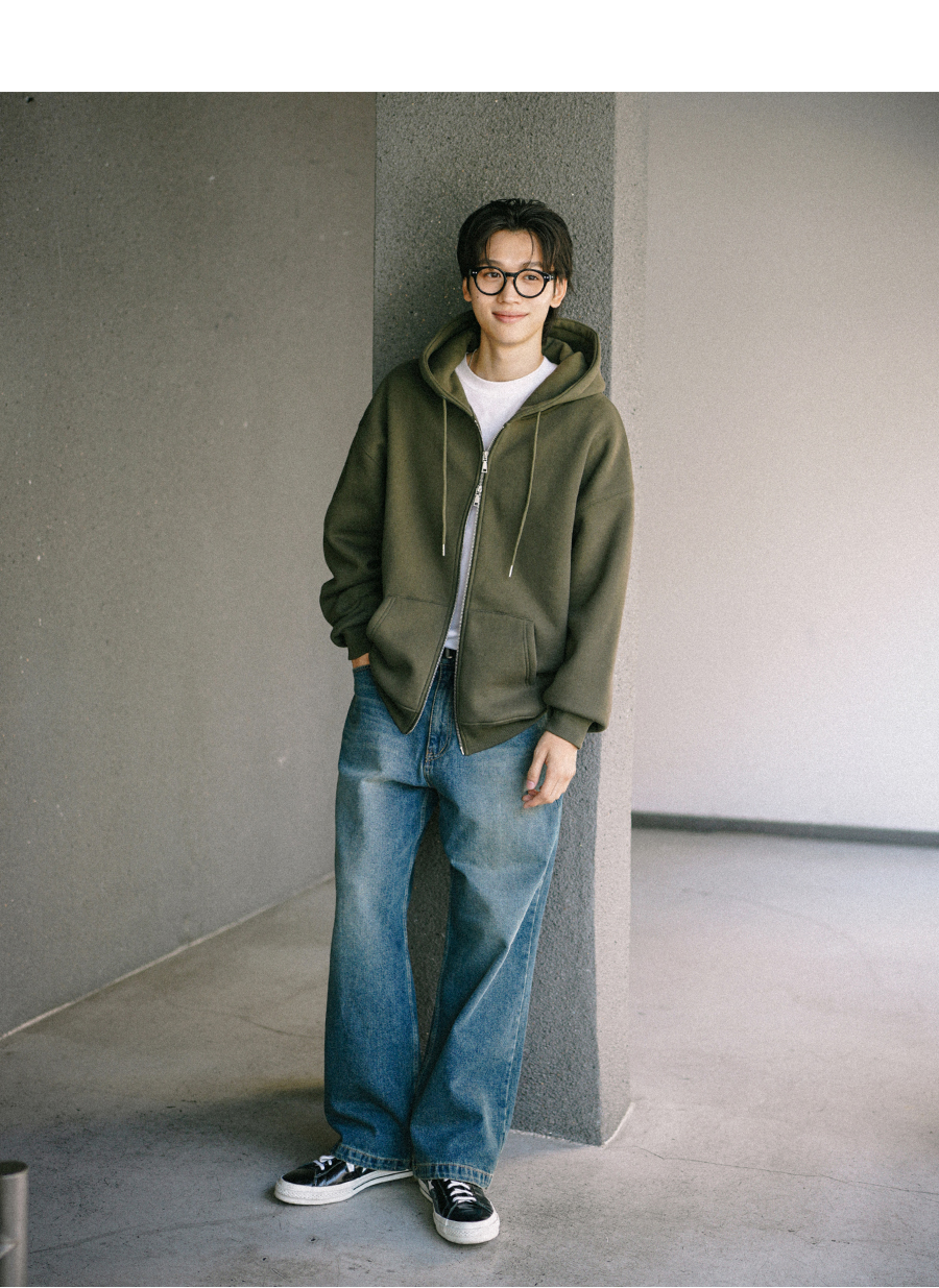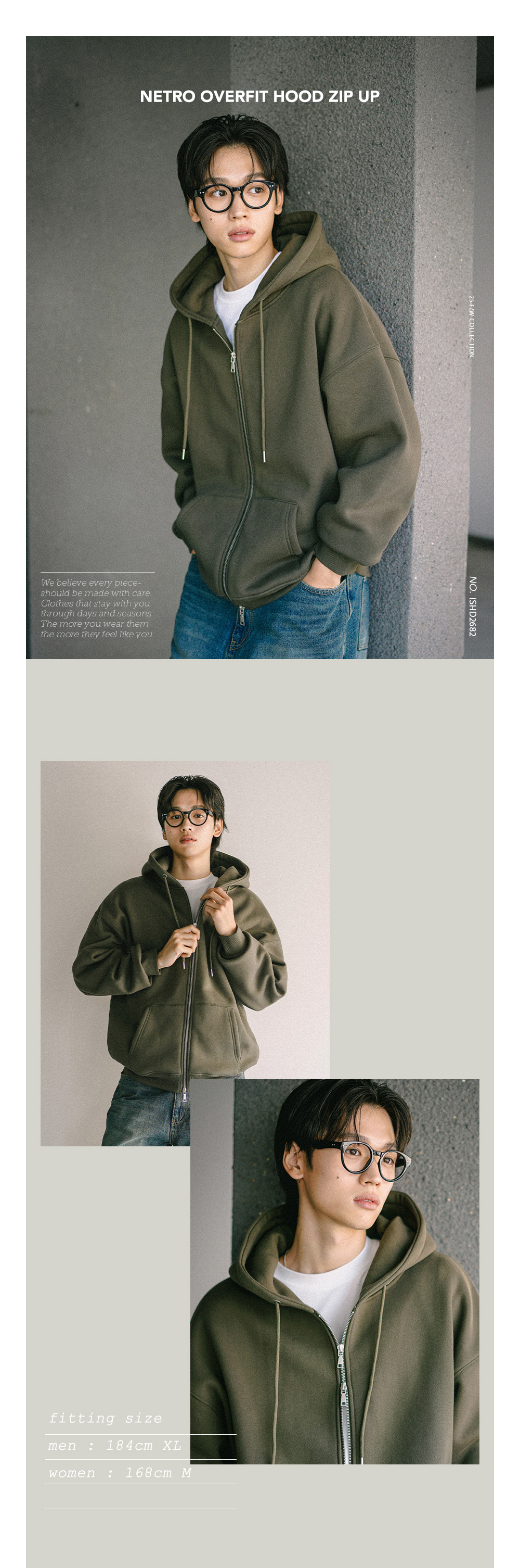 네트로 오버핏 후드 집업 다크카키 ISHD2682